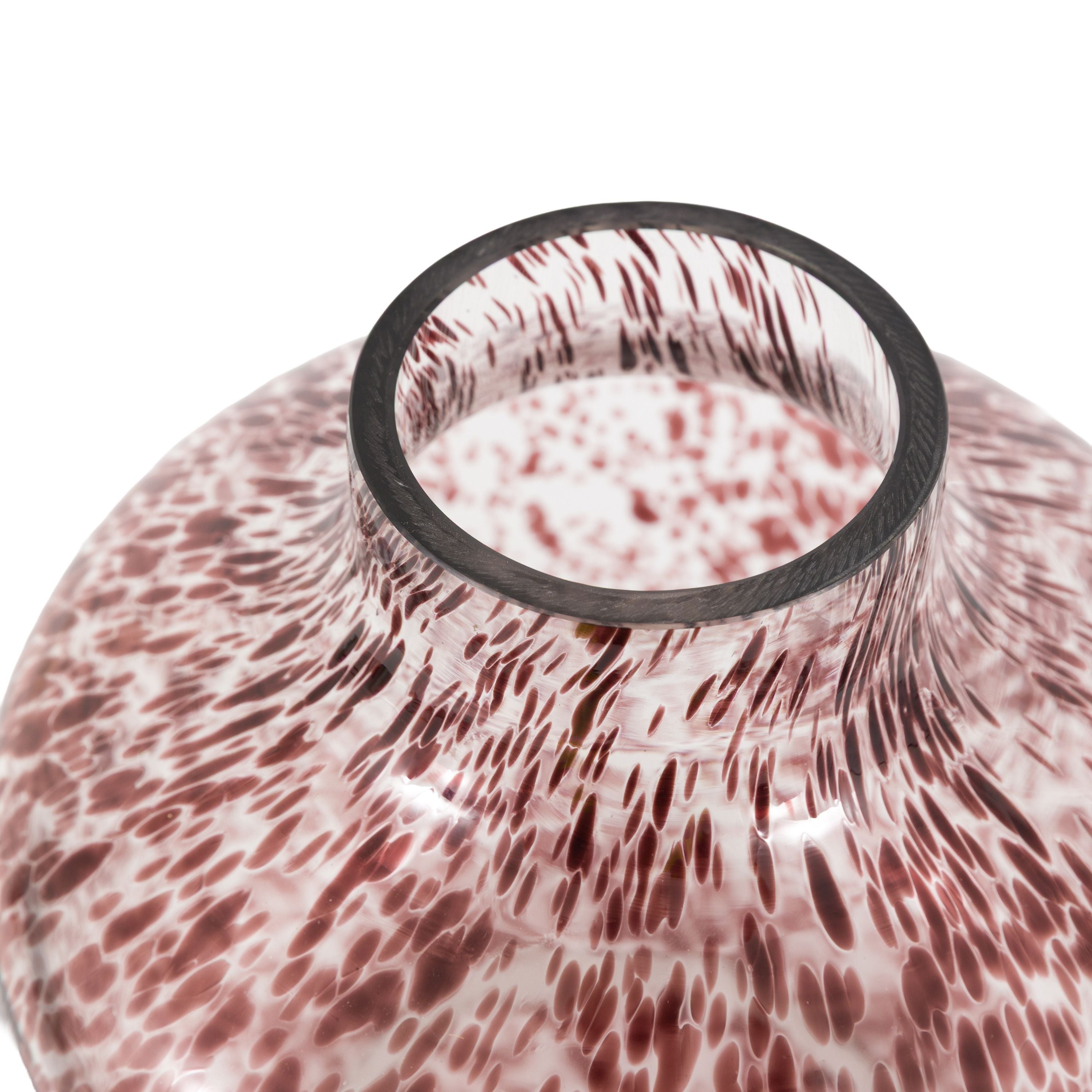 Stunning handblown glass vase dappled with coloured brown glass, perfect for displaying on its own or filled with beautiful flowers.