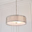 The Boskenna Pendant Light is a must-have addition to any stylish interior. With its trendy geometric fretwork metal outer and inner fabric shade, this classic circular light provides lovely light diffusion. The rope chain is also height adjustable, allowing you to customize the light to your desired length. Measuring at 560mm in width, depth, and 300mm in height, this pendant light is the perfect size for any room. Its sleek silver color adds a touch of elegance to any space. Made with high-quality materials such as glass, fabric, and steel, this light is built to last. Not only is the Boskenna Pendant Light a beautiful addition to your home, but it also offers fast delivery. With House of Isabella, you can expect free UK delivery on all luxurious furniture and interiors. So why wait? Elevate your home decor with the Boskenna Pendant Light today.