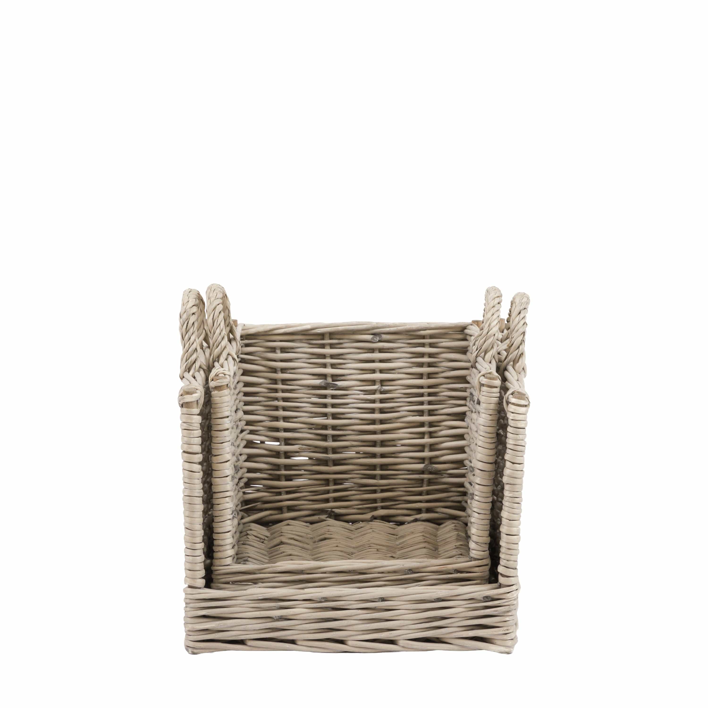 Pile the logs high and keep cosy this winter with this set of 2 open ended woven baskets. Double handled for easy lifting these open ended baskets are perfect for logs or kindling, creating easy access and stylish storage.