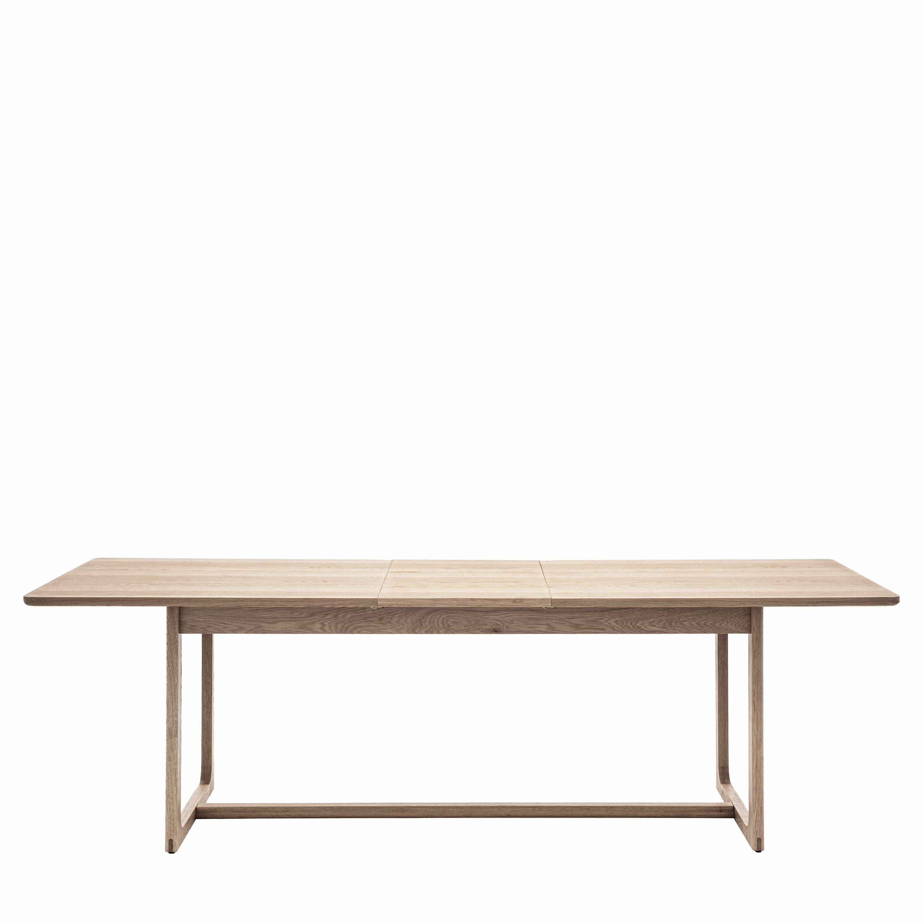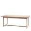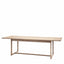 The table measures 2,000 mm in width, 950 mm in depth, and 750 mm in height. The leg and feet height is 717 mm, with a clearance to the floor of 717 mm. When packaged, the table measures 1,020 mm in length, 2,070 mm in width, and 125 mm in height. It has a net weight of 61 kg and a gross weight of 67 kg. The material is a combination of oak (65%) and oak veneered MDF (35%). The table comfortably seats 8 people and requires assembly of the leg and foot only. It also extends to 2500mm for added convenience.