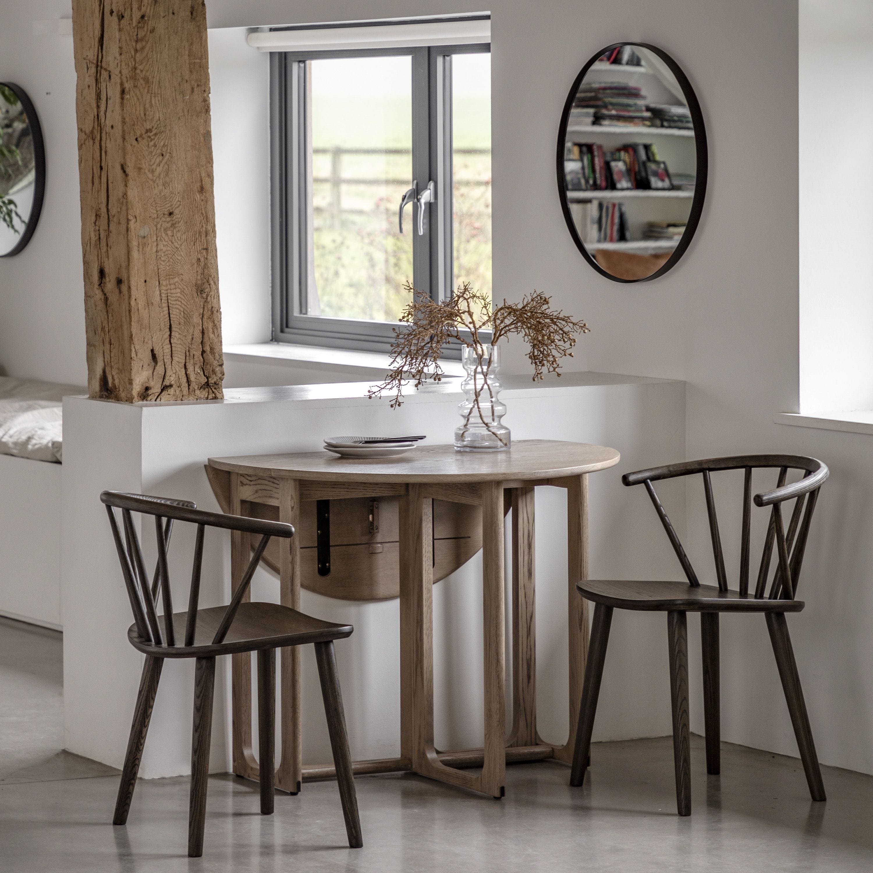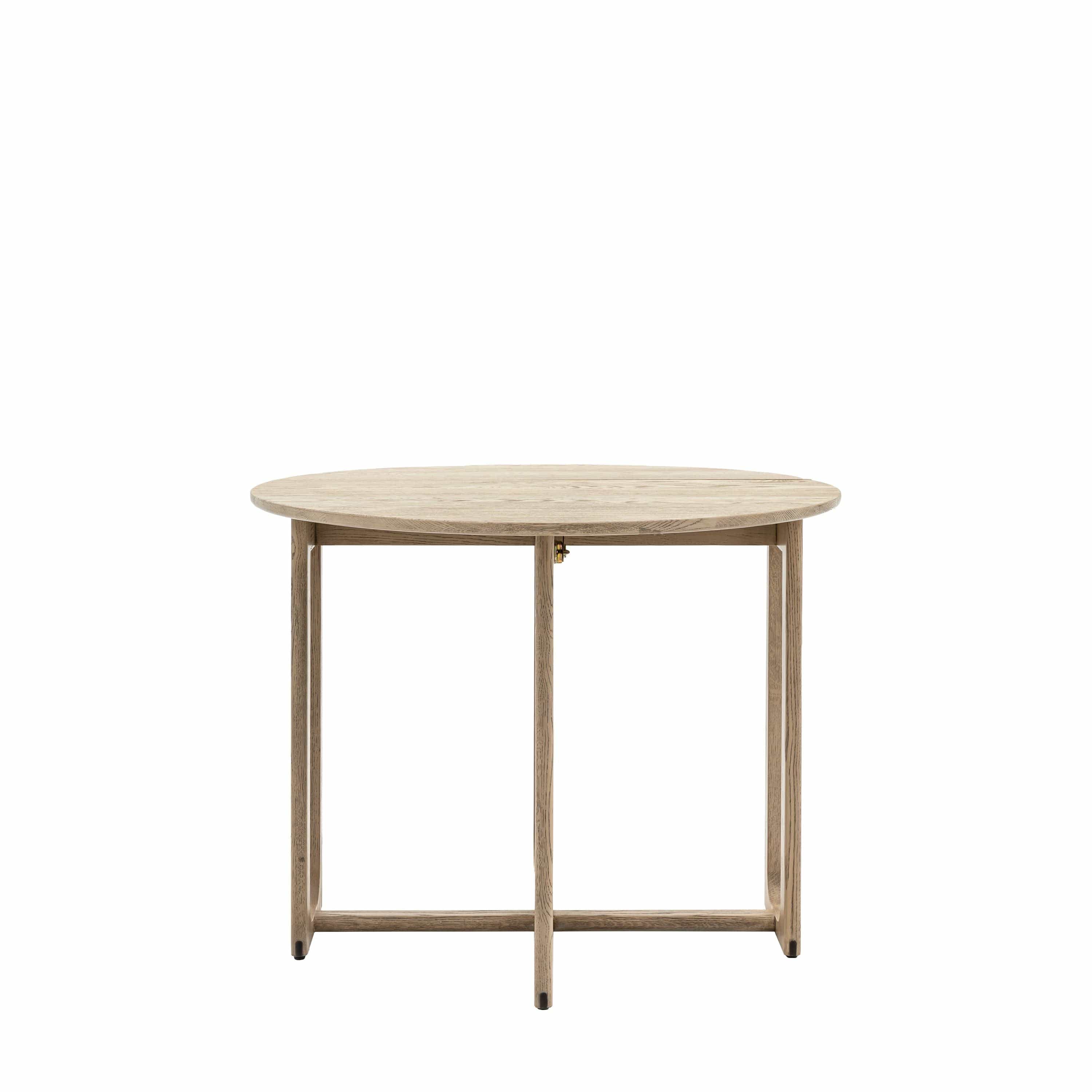 Crafted from the finest oak and structural oak veneers where practical, this stunning folding dining table pairs perfectly with the matching chairs. The table, which folds for added convenience, offers elegant design, with its simple round top and beautifully shaped underframe. The wood has a lovely natural finish. The table is also available in a smoked oak finish, and matching pieces are available.