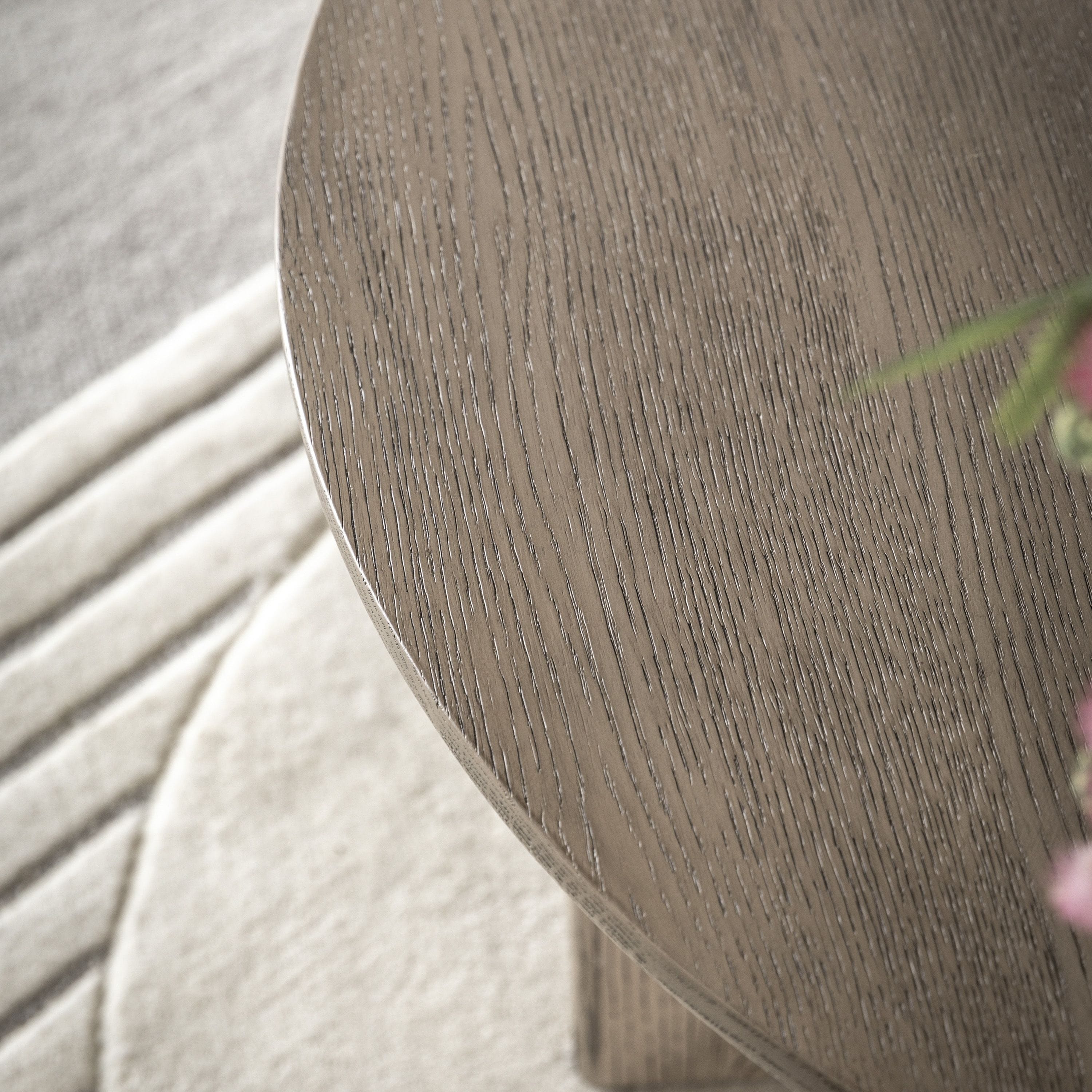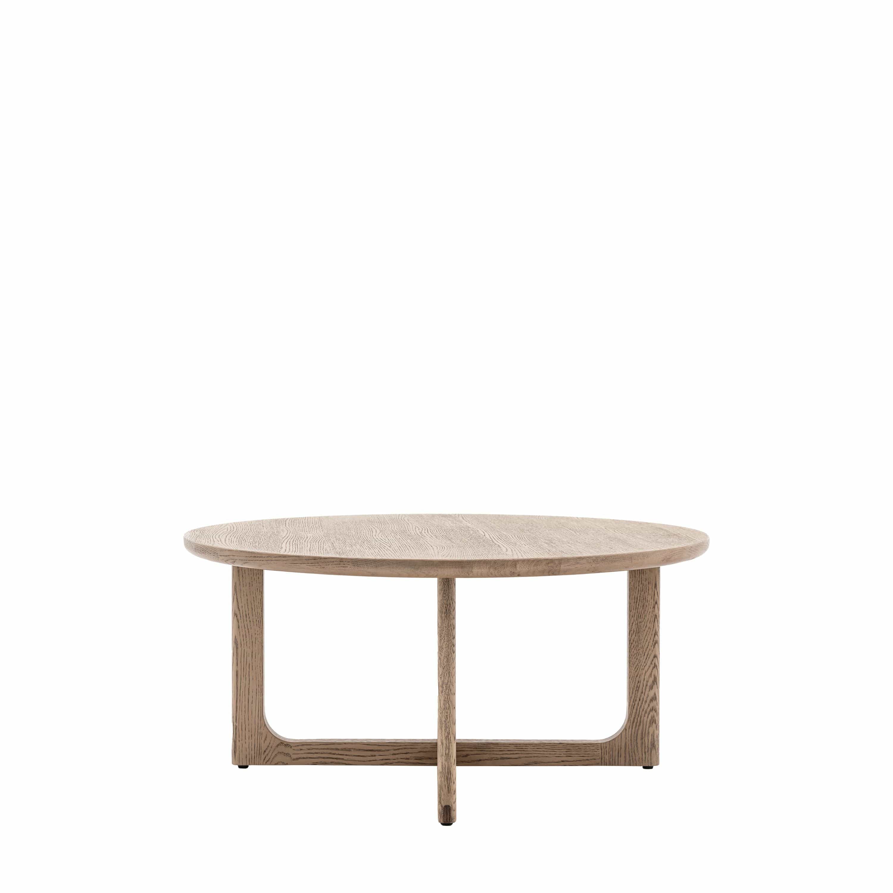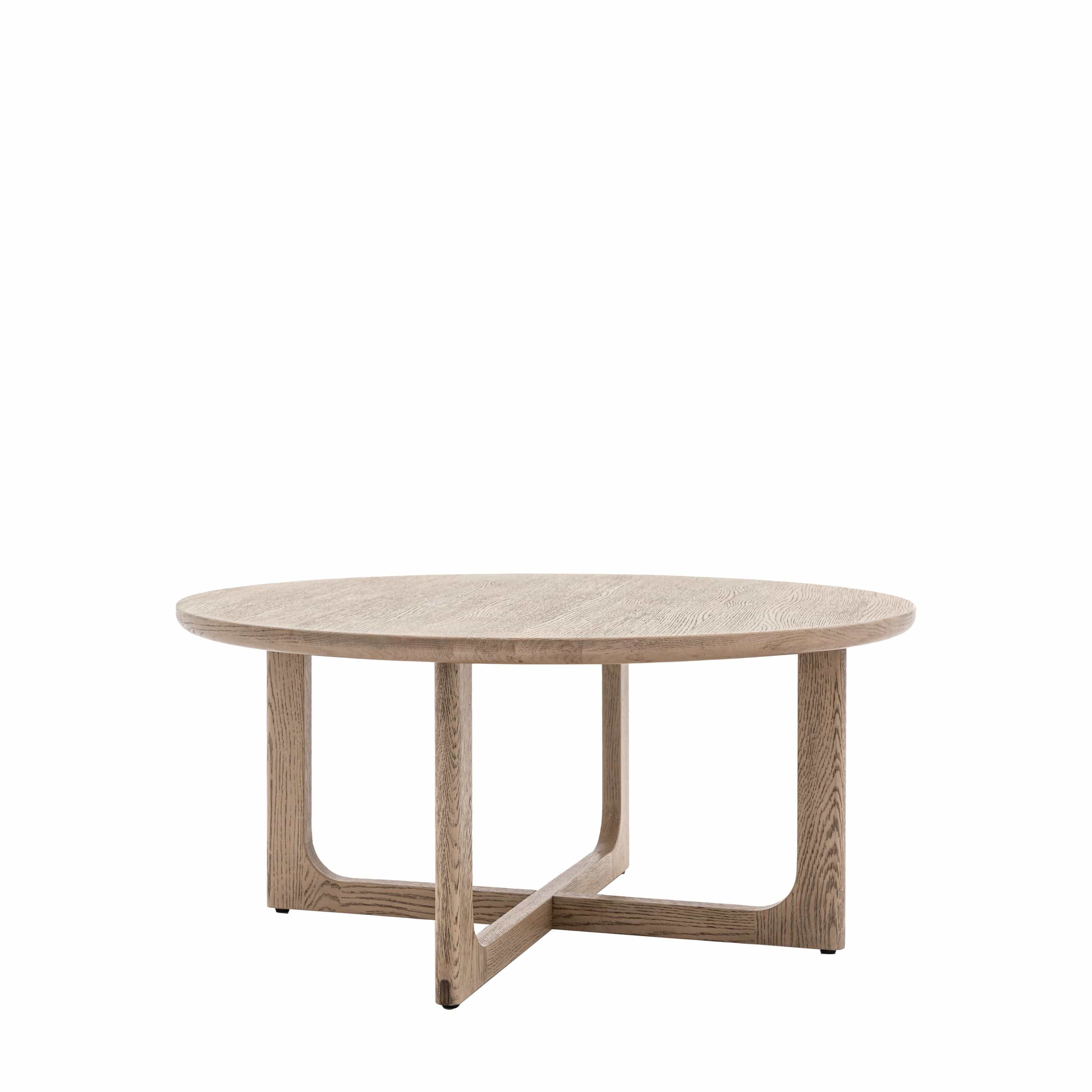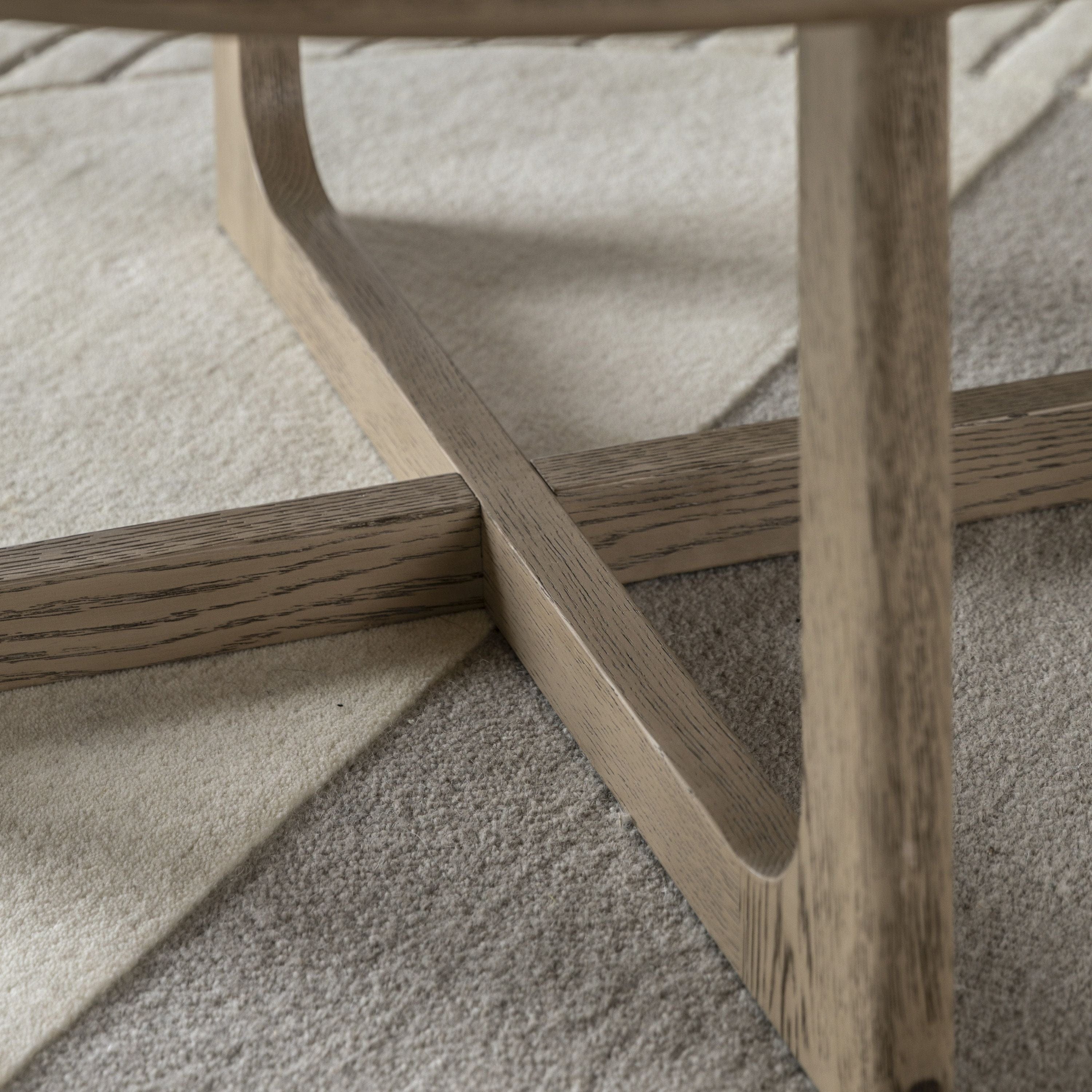 Crafted from the finest oak and structural oak veneers where practical, this beautiful coffee table offers elegant design, with its simple round top and beautifully shaped underframe. The wood has a lovely natural finish. The table is also available in a smoked oak finish, and matching pieces are available.