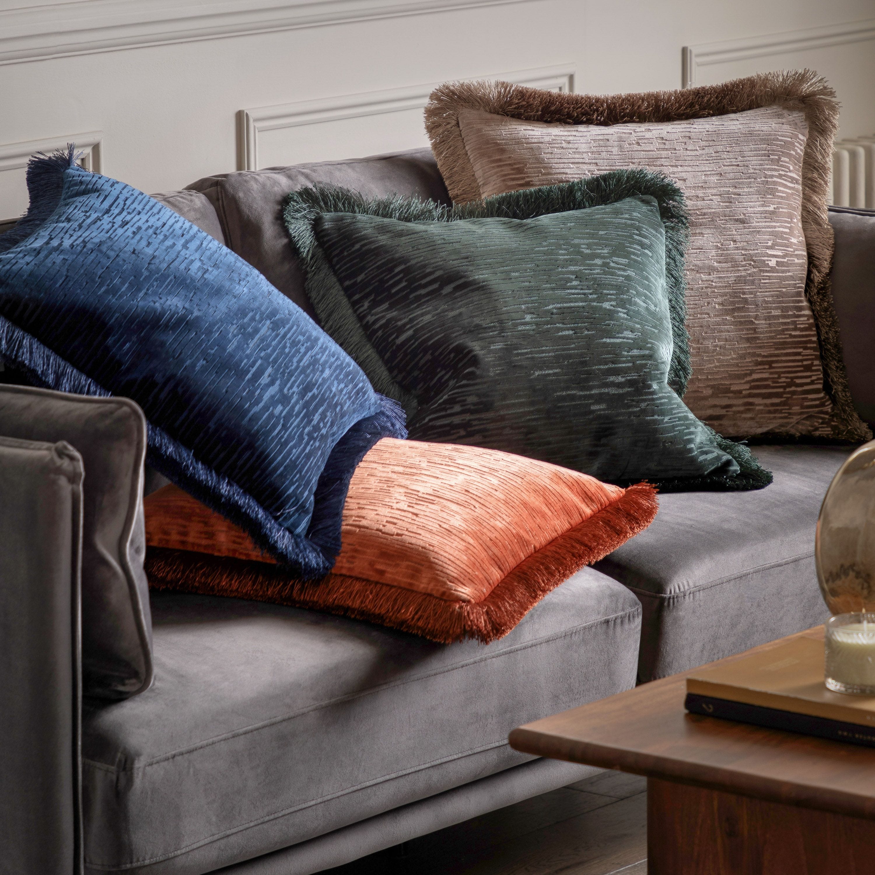 Introducing the Cut Velvet Fringe Cushion Blue, a luxurious addition to any home. Made from 100% polyester, this cushion boasts a beautifully rich tone and soft fringed trim. But what sets this cushion apart is its fast delivery, ensuring you can enjoy its luxurious comfort in no time.