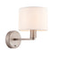 An understated interior wall light, mixing a subtle brushed plated finish with a timeless vintage white faux silk fabric shade. With modern on/off switch. Modern styling for today's interiors. Matching items also available.