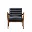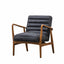 Introducing the Brampton Armchair Antique Ebony, a stylish mid-century design that will elevate any living space. Made with top grain leather in an antique ebony finish, this armchair boasts natural textures and grains for a unique and luxurious look. The decorative channel stitching adds a touch of elegance, while the solid oak angled frame provides durability and stability.