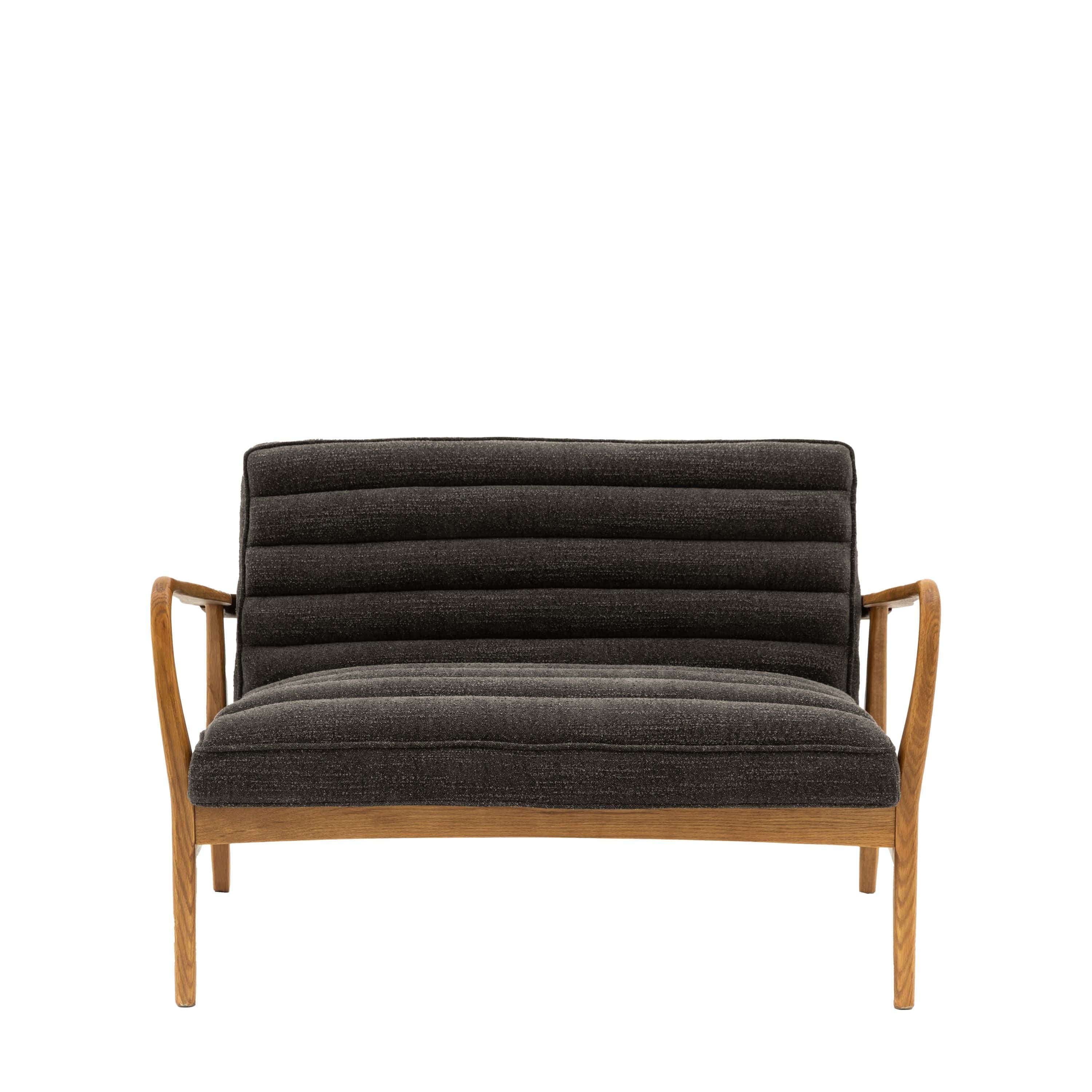 Introducing the Datzun 2 Seater Charcoal Boucle, a stylish mid-century sofa that will elevate any living space. Made with top grade leather in Antique Ebony, this sofa features natural textures and grains, along with decorative horizontal channel stitching. The solid oak angled frame adds a touch of elegance to the design.