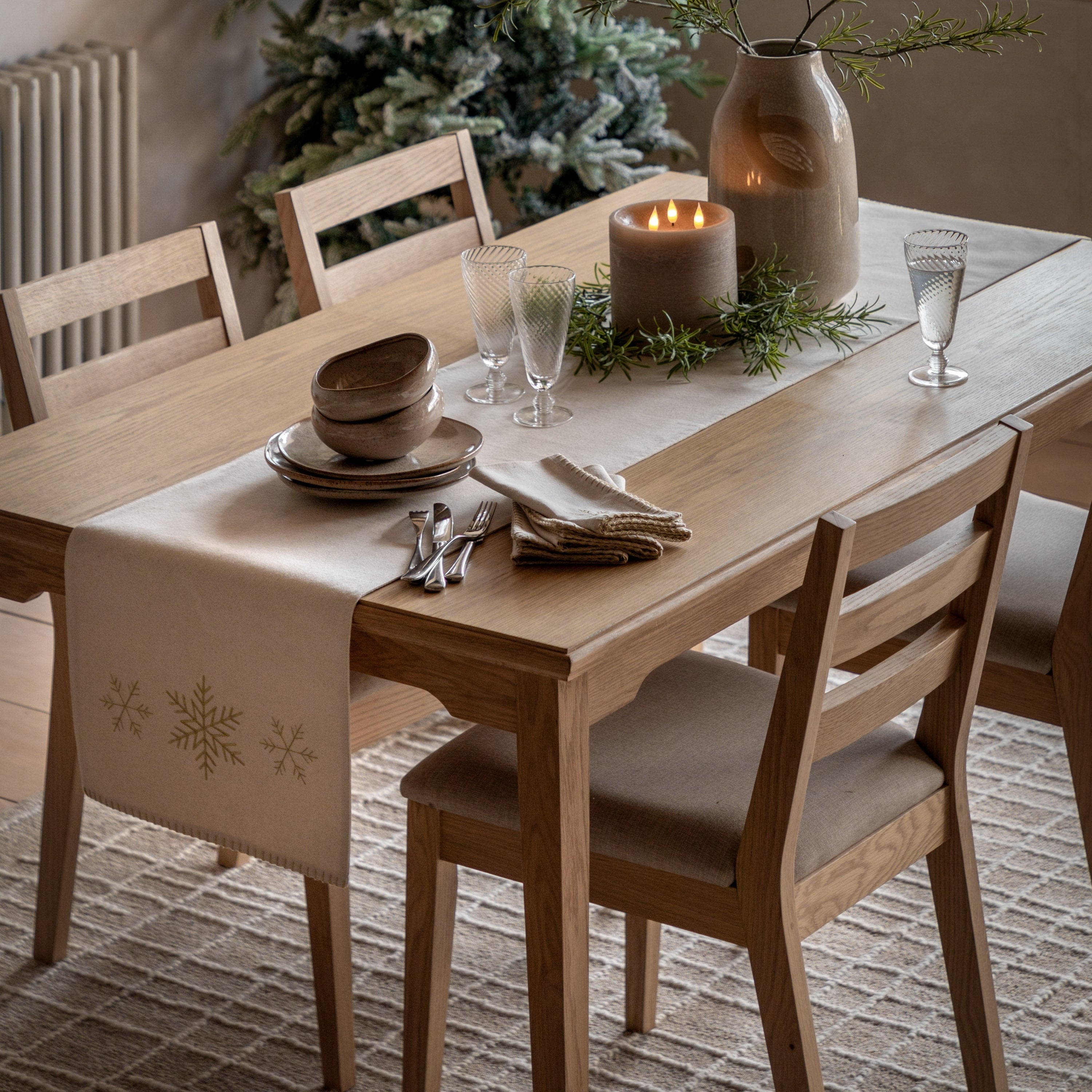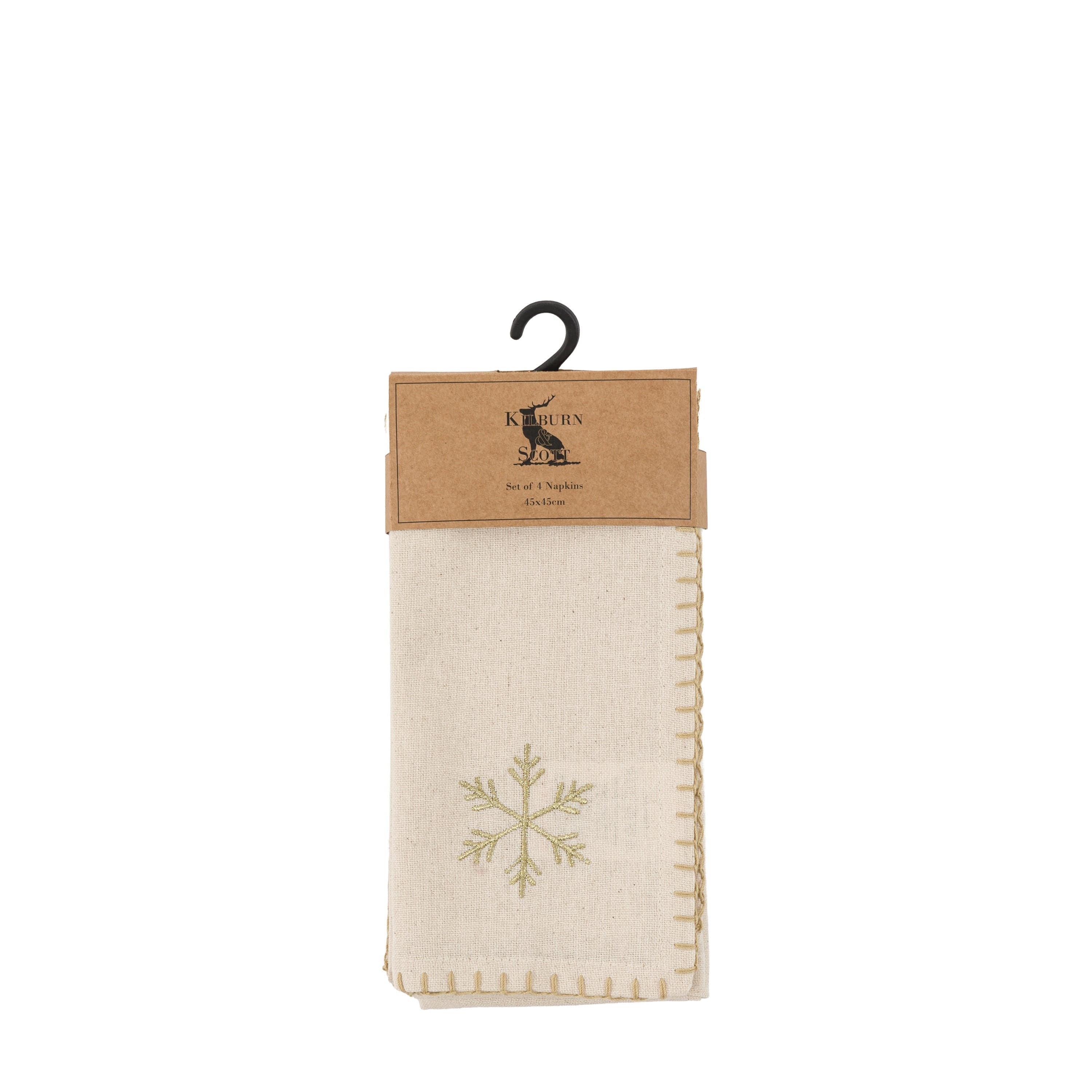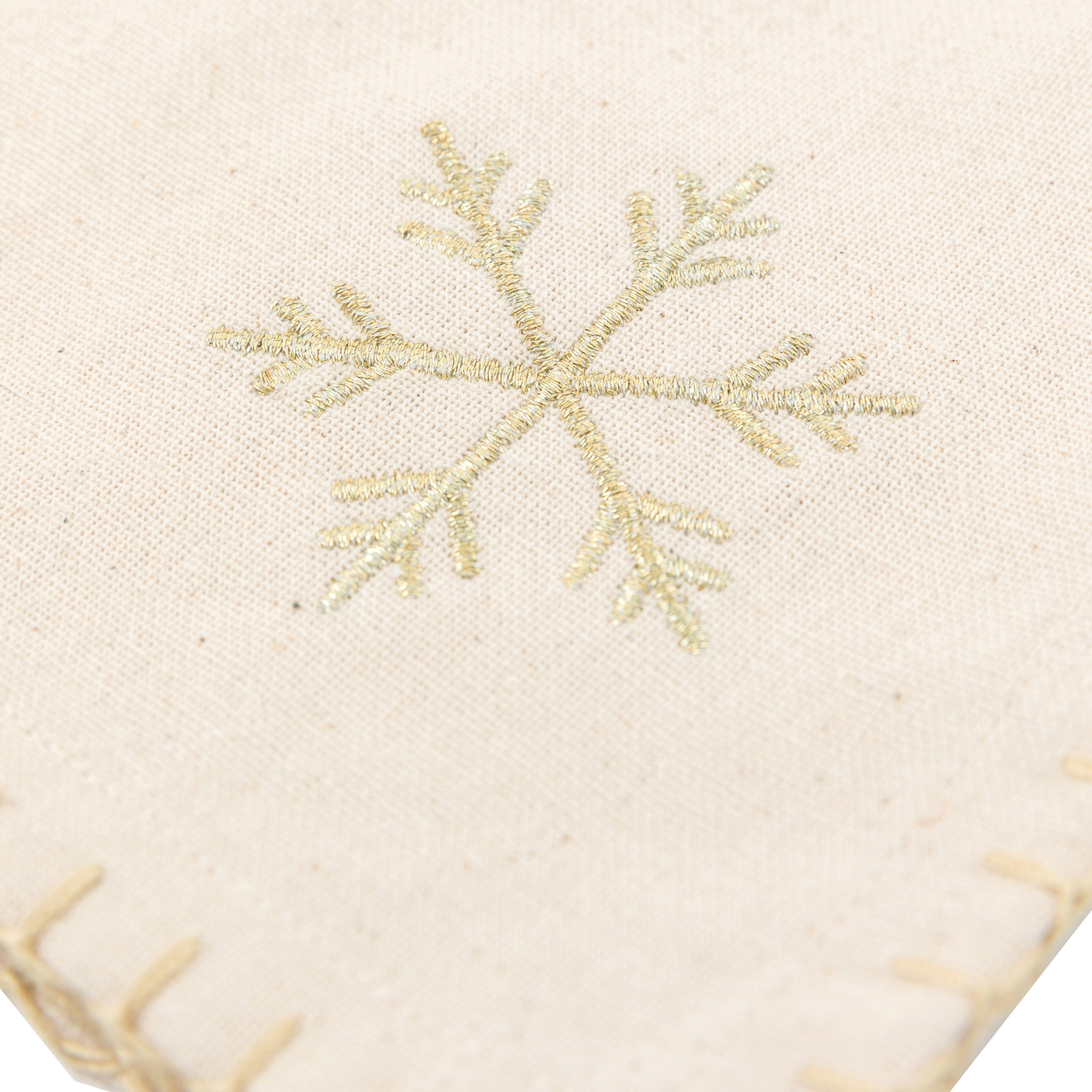 Set the table in style with these luxe snowflake napkins. Trimmed with a simple blanket stitch, the gold embroidered snowflakes shine out.