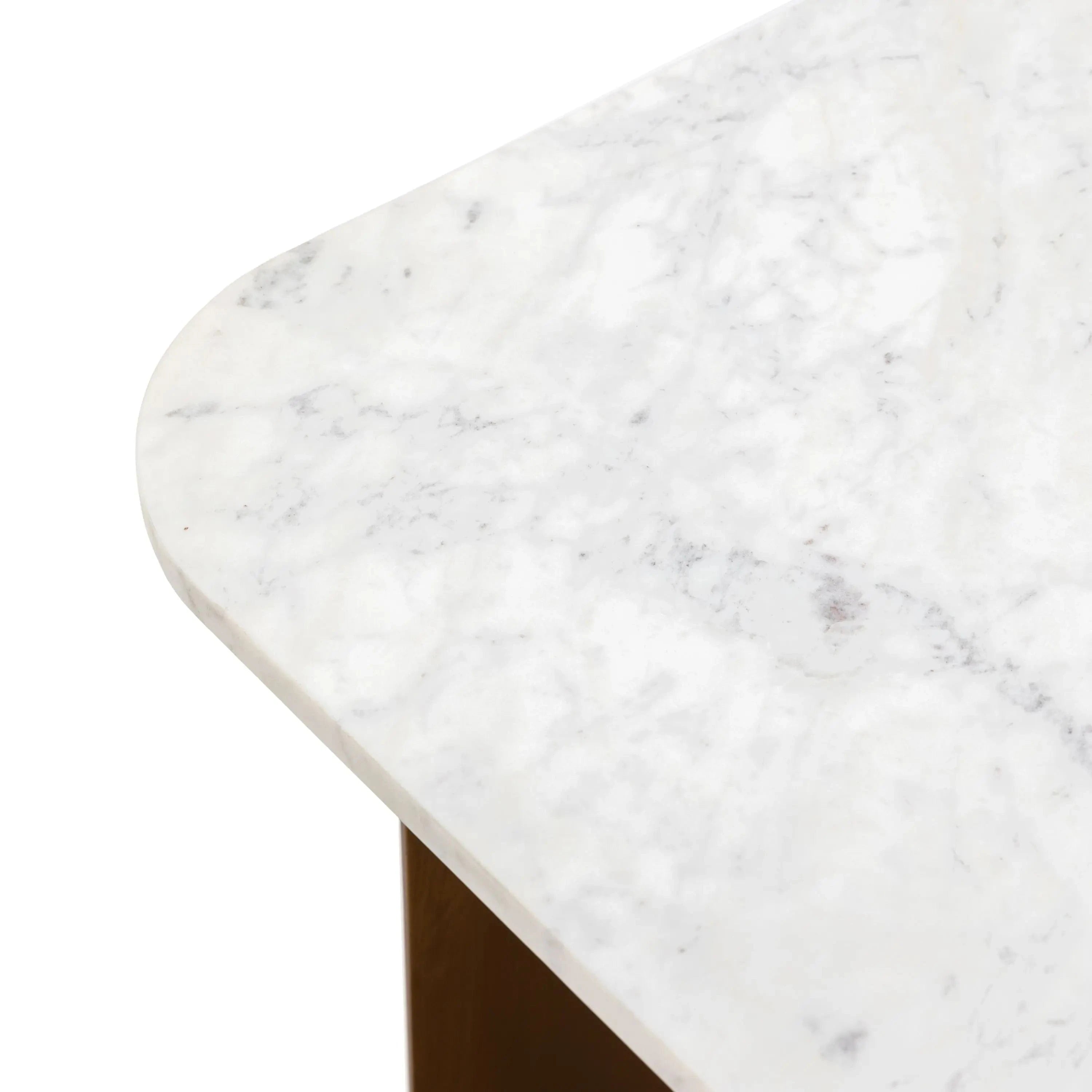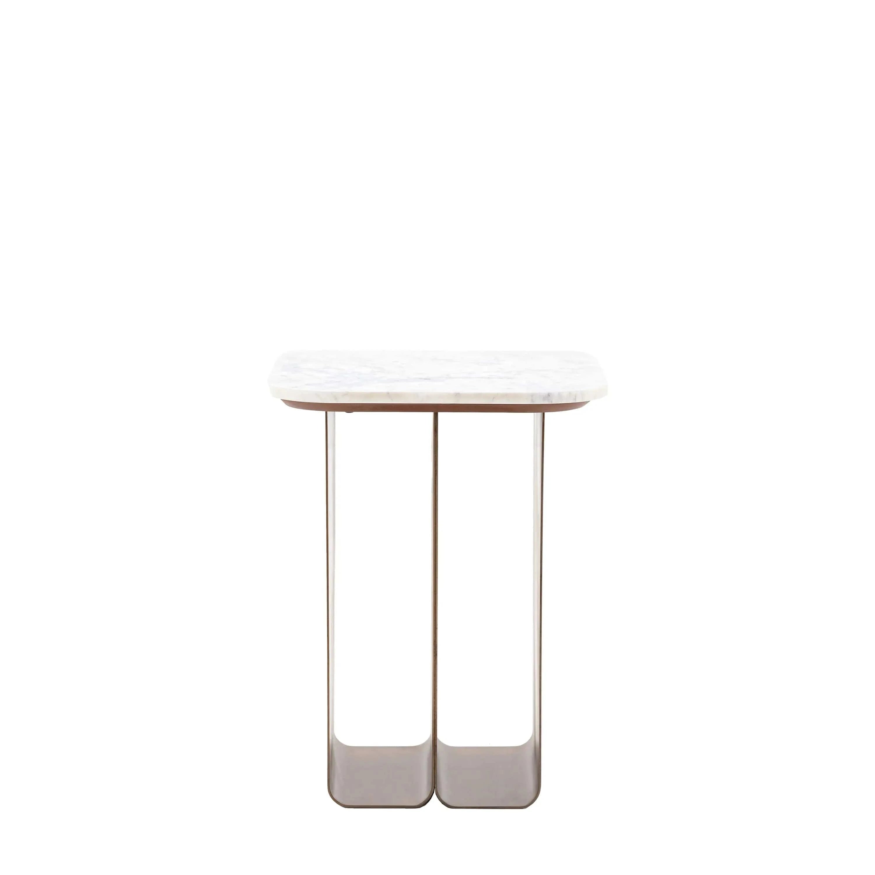 This side table is a stylish and practical piece that complements any living space. Its compact size and elegant design make it ideal for use as a bedside table, accent table, or sofa side table. The luxurious marble top and sturdy metal base offer a durable and sophisticated look that will enhance any decor.