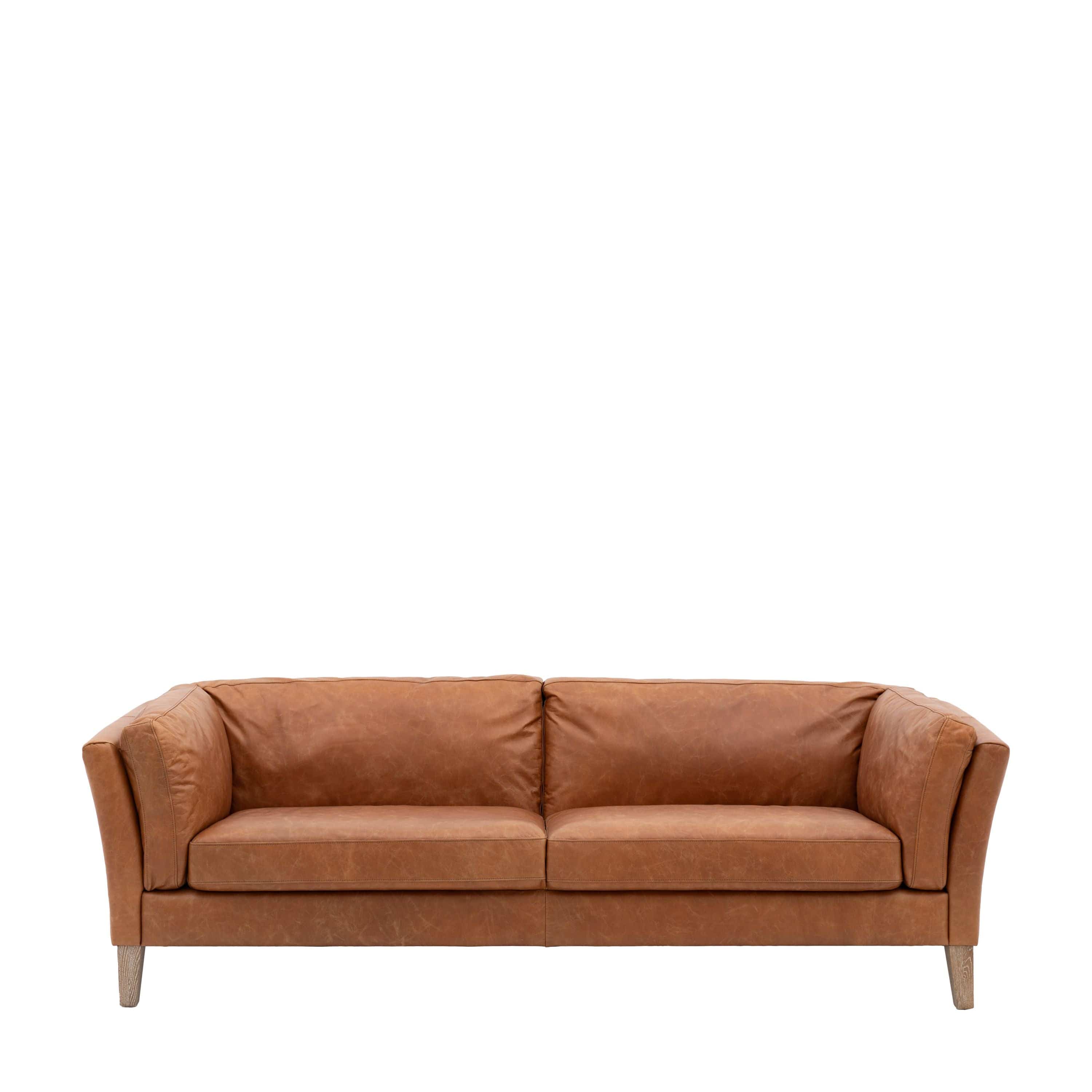 Introducing the Ebury 3 Seater Sofa, the perfect addition to any living space. This stylish sofa is covered in top grain mellow brown vintage leather, giving it a luxurious and timeless look. The solid ash legs and padded arms provide extra comfort, making it the ideal spot to relax and unwind.