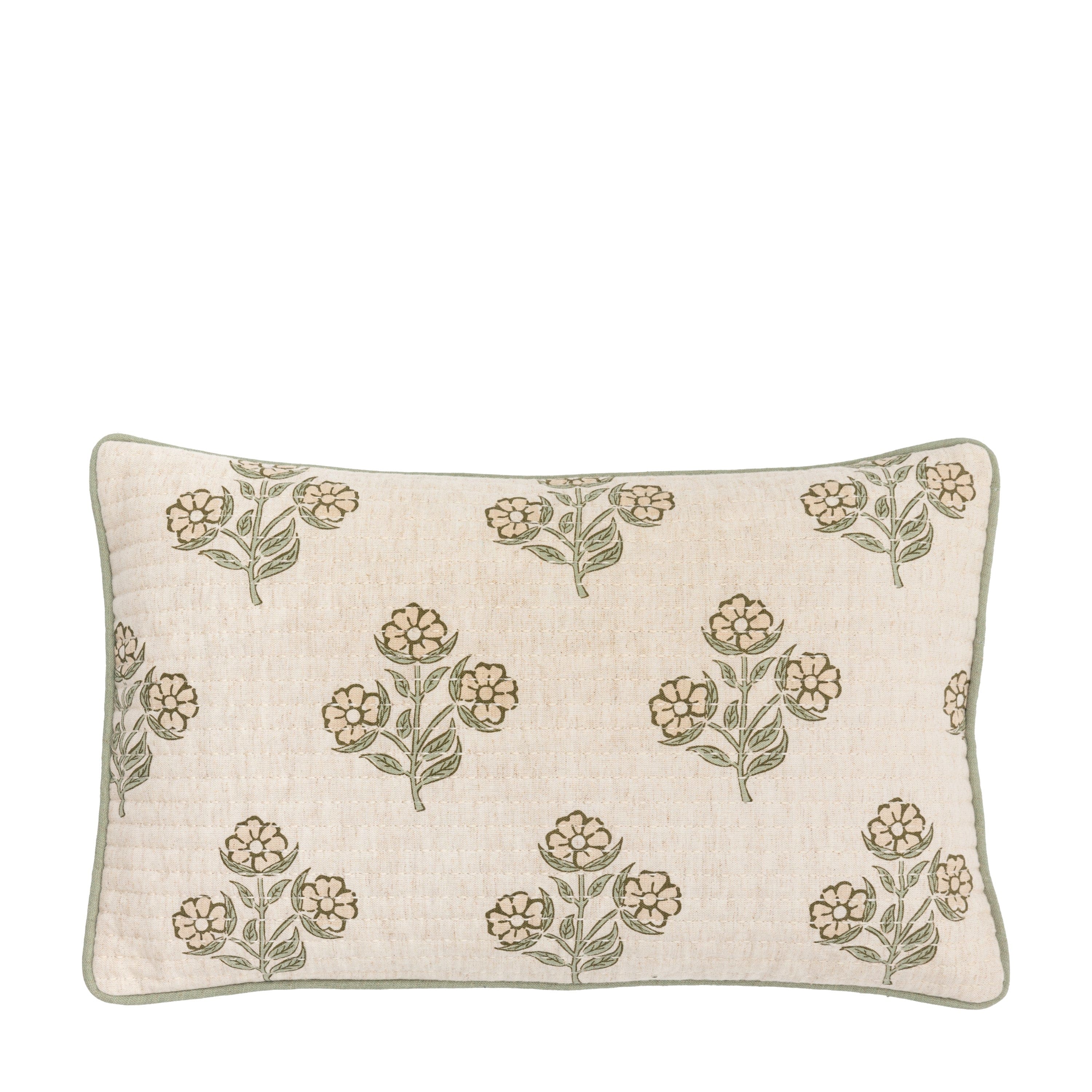 With a stamped floral design, highlighted by running stitch detailing and a contrasting piped edge this is a charming addition to any room.