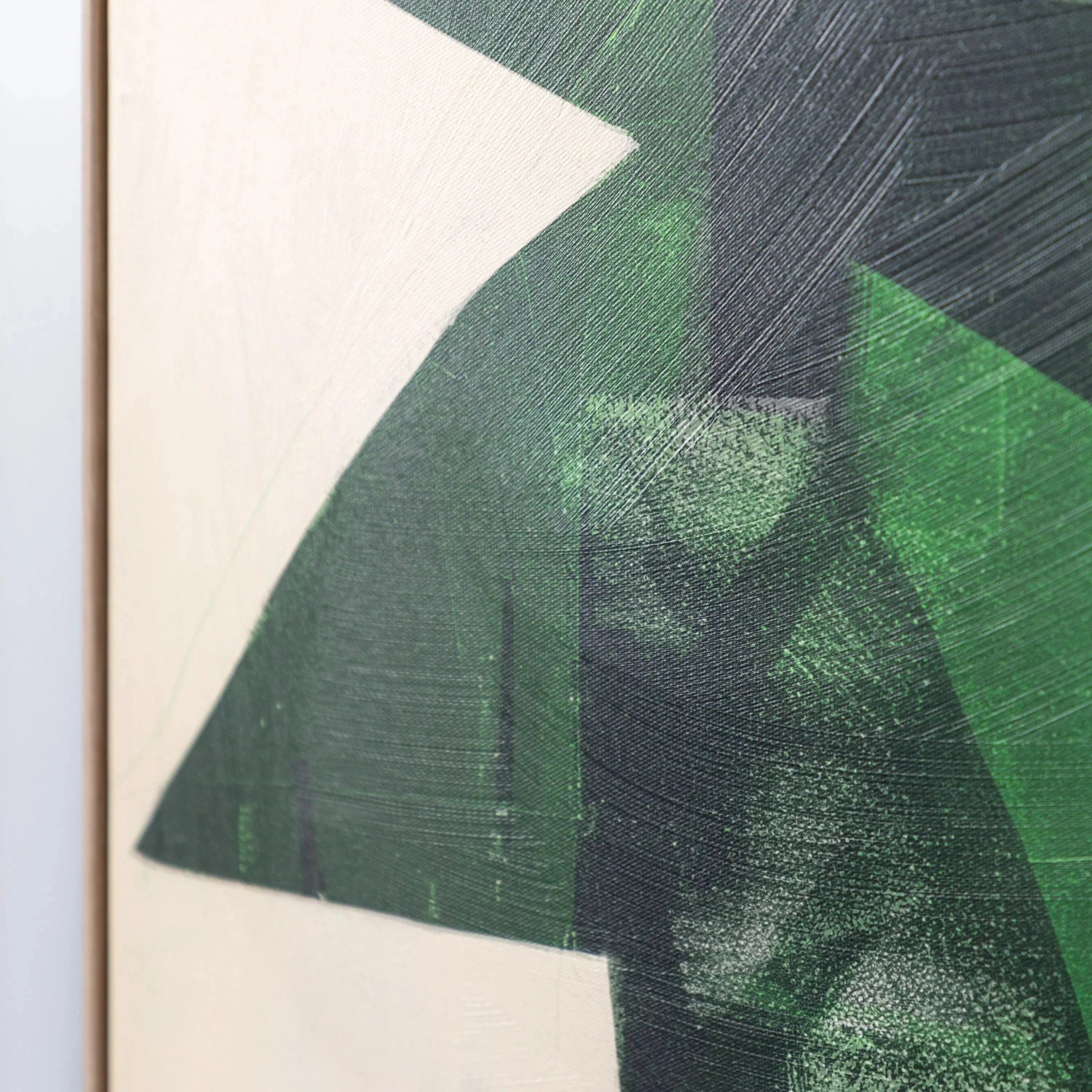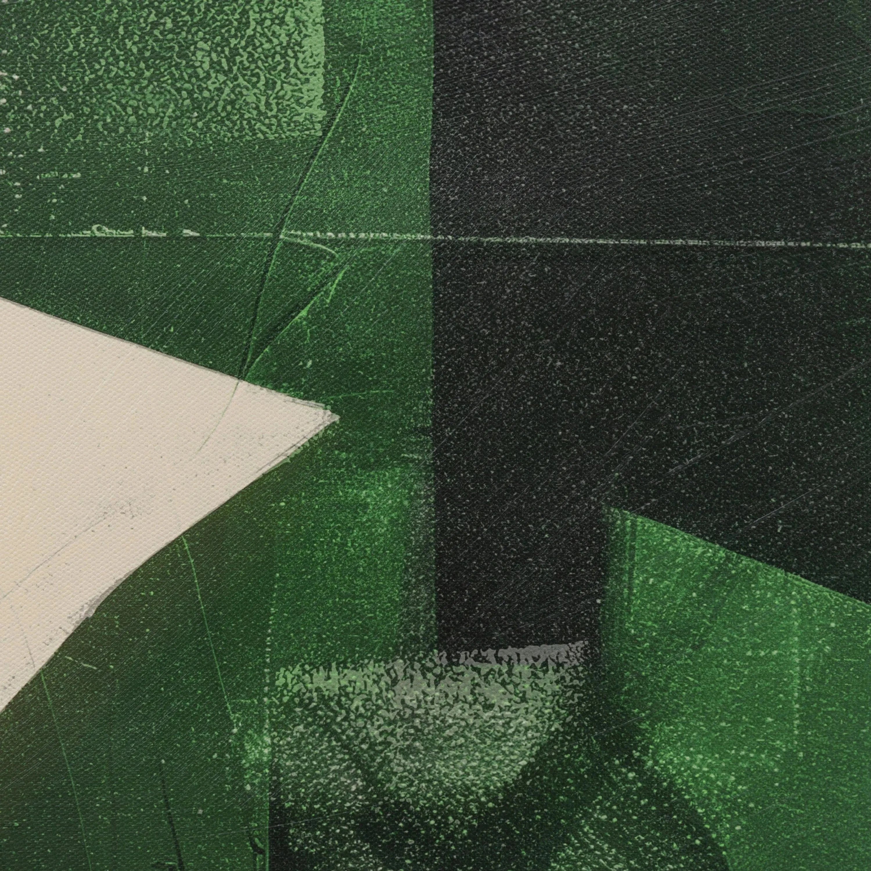 Make a bold statement with this canvas. This striking piece features a vibrant emerald green palette and dynamic abstract shapes, creating a captivating focal point for any room.