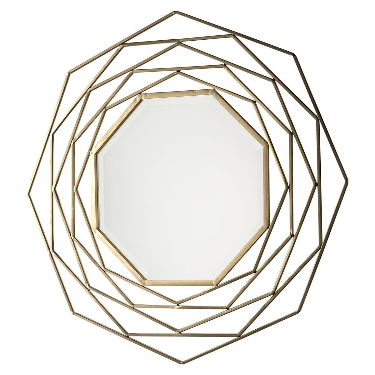 A unique geometric octagonal wall mirror with contemporary metal frame in a painted black finish with shaped centre mirror. Ready to hang.