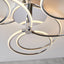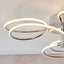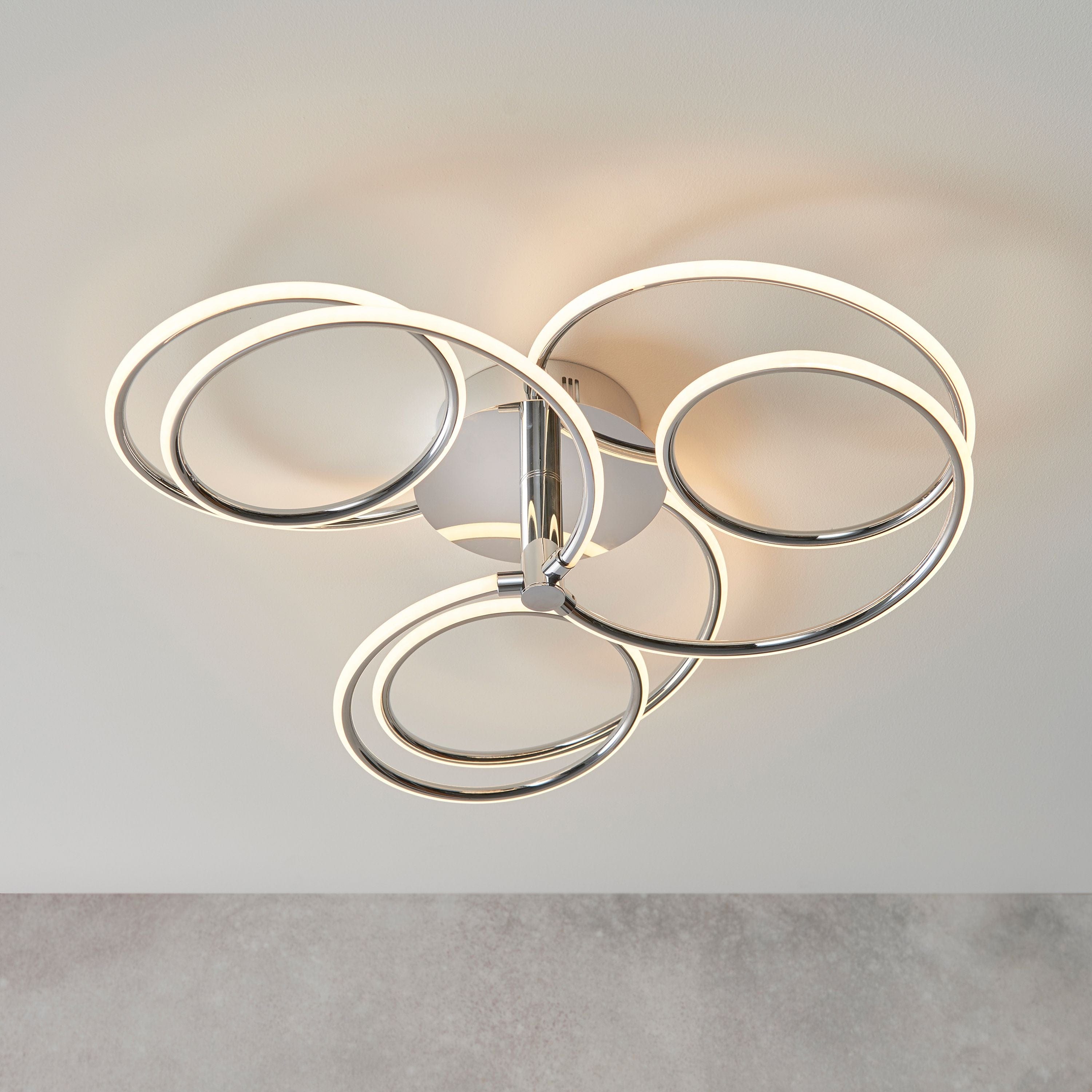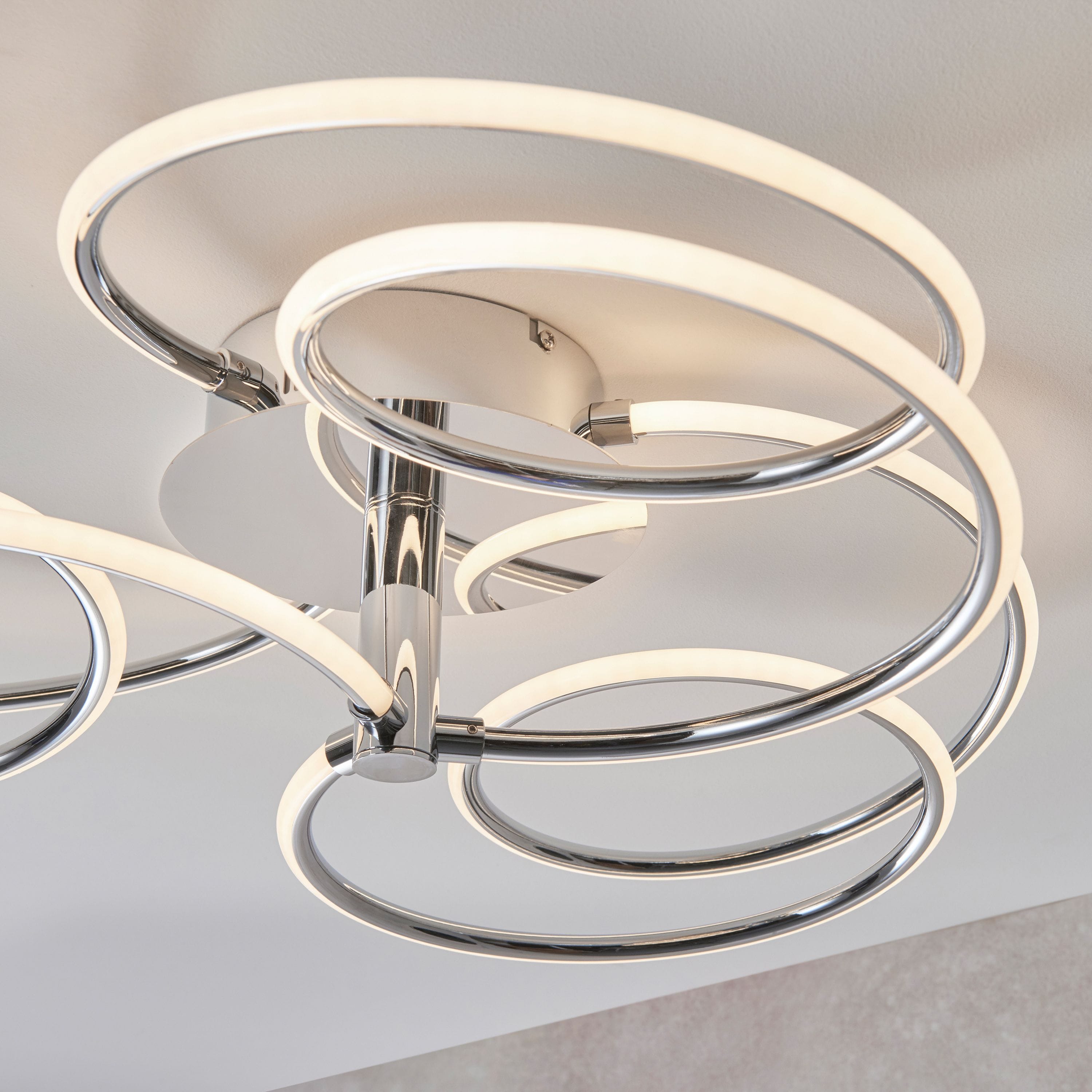 A unique contemporary ceiling light with a duo of flowing illuminated curves creating an amazing designer look. Chrome plated finish with white diffuser and integrated LED.