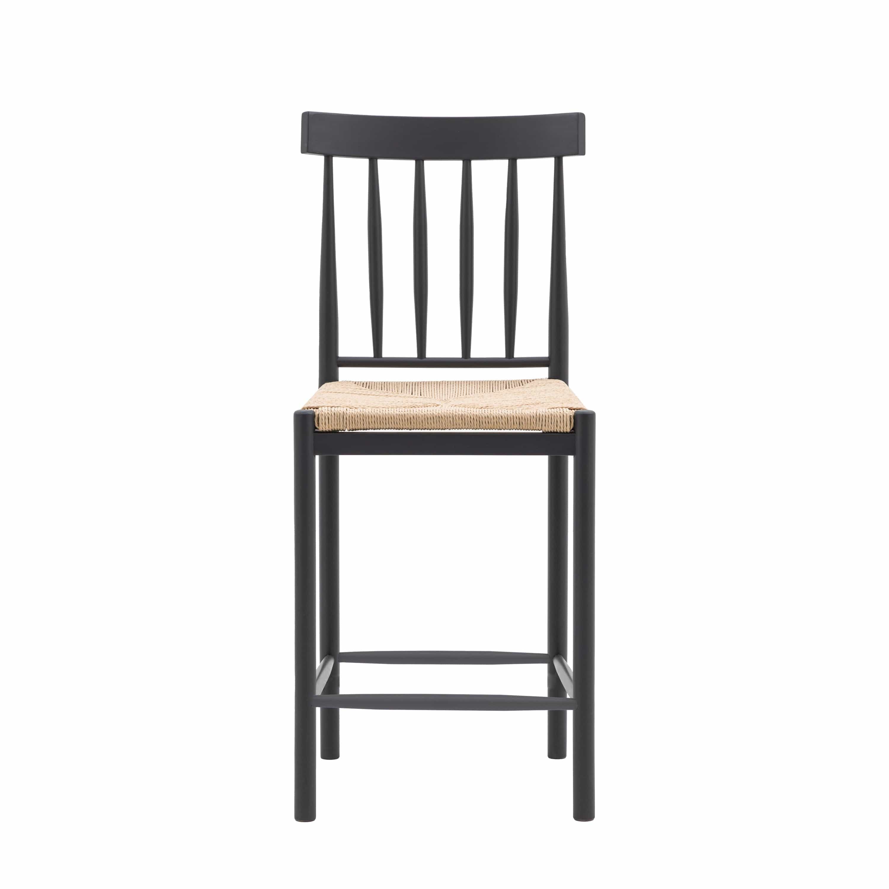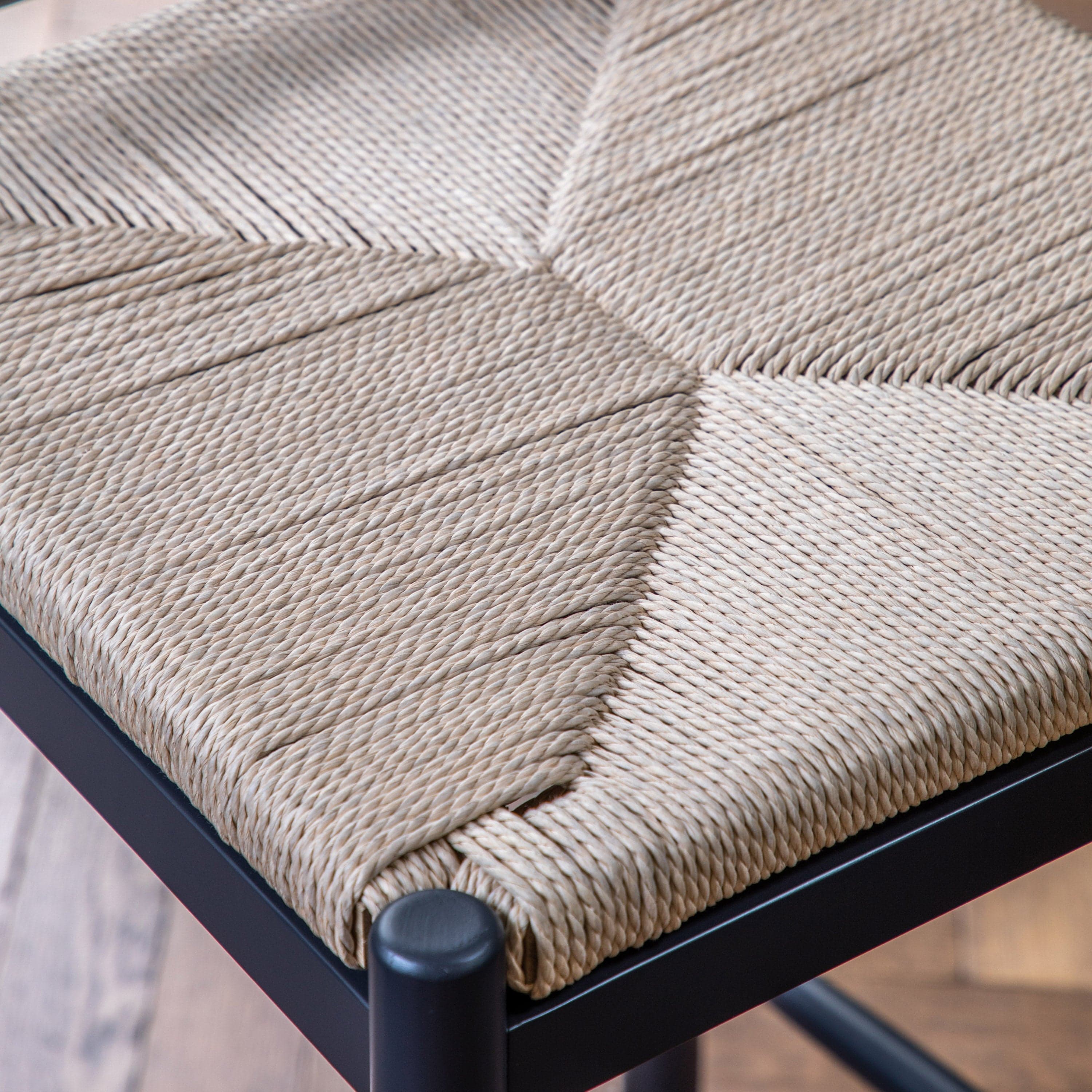 Set of 2 bar stools perfect for enjoying that morning coffee in your cosy kitchen. With a hand painted subtly textured solid oak frame and a hand woven rope seat, these bar stools are a contemporary take on a rustic classic.