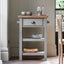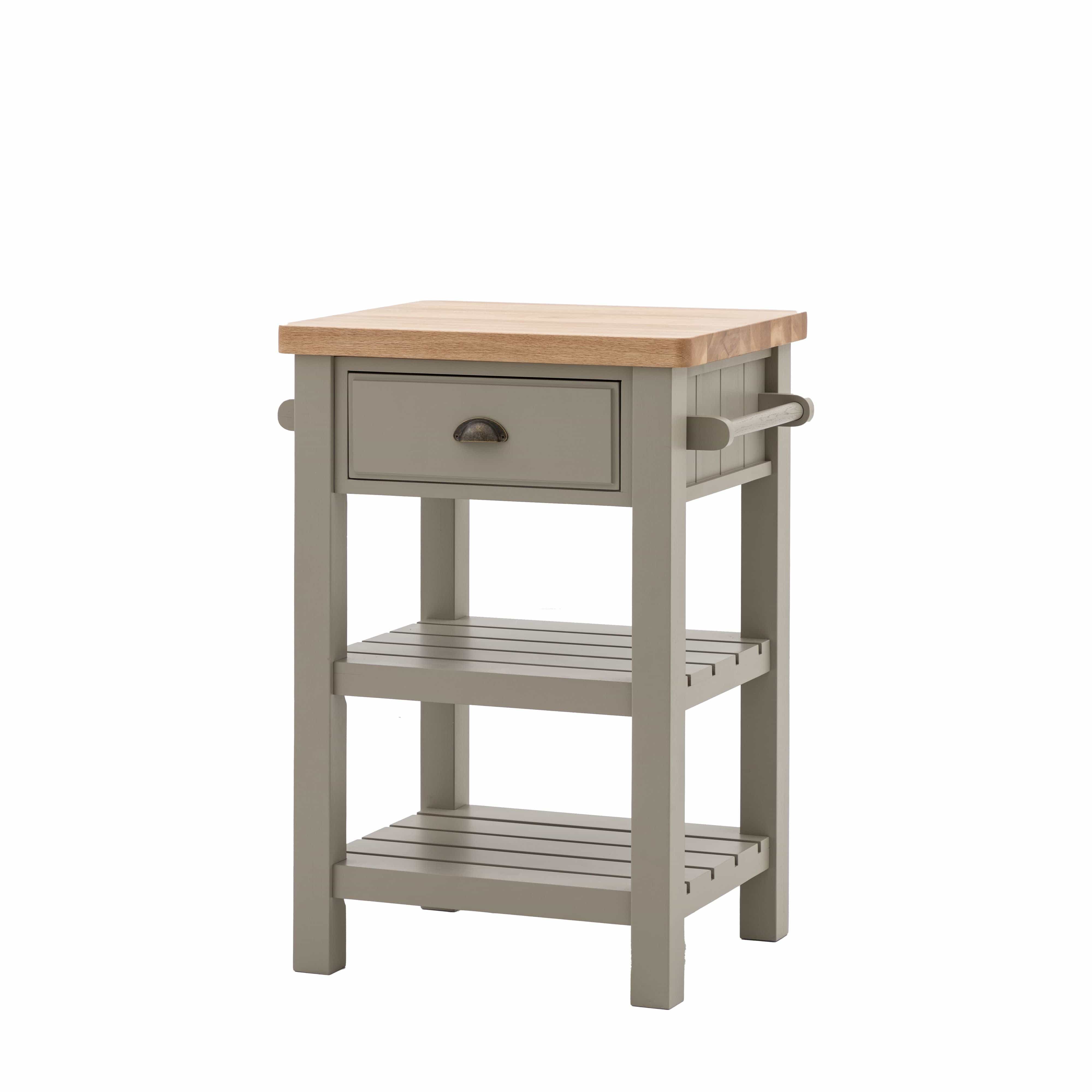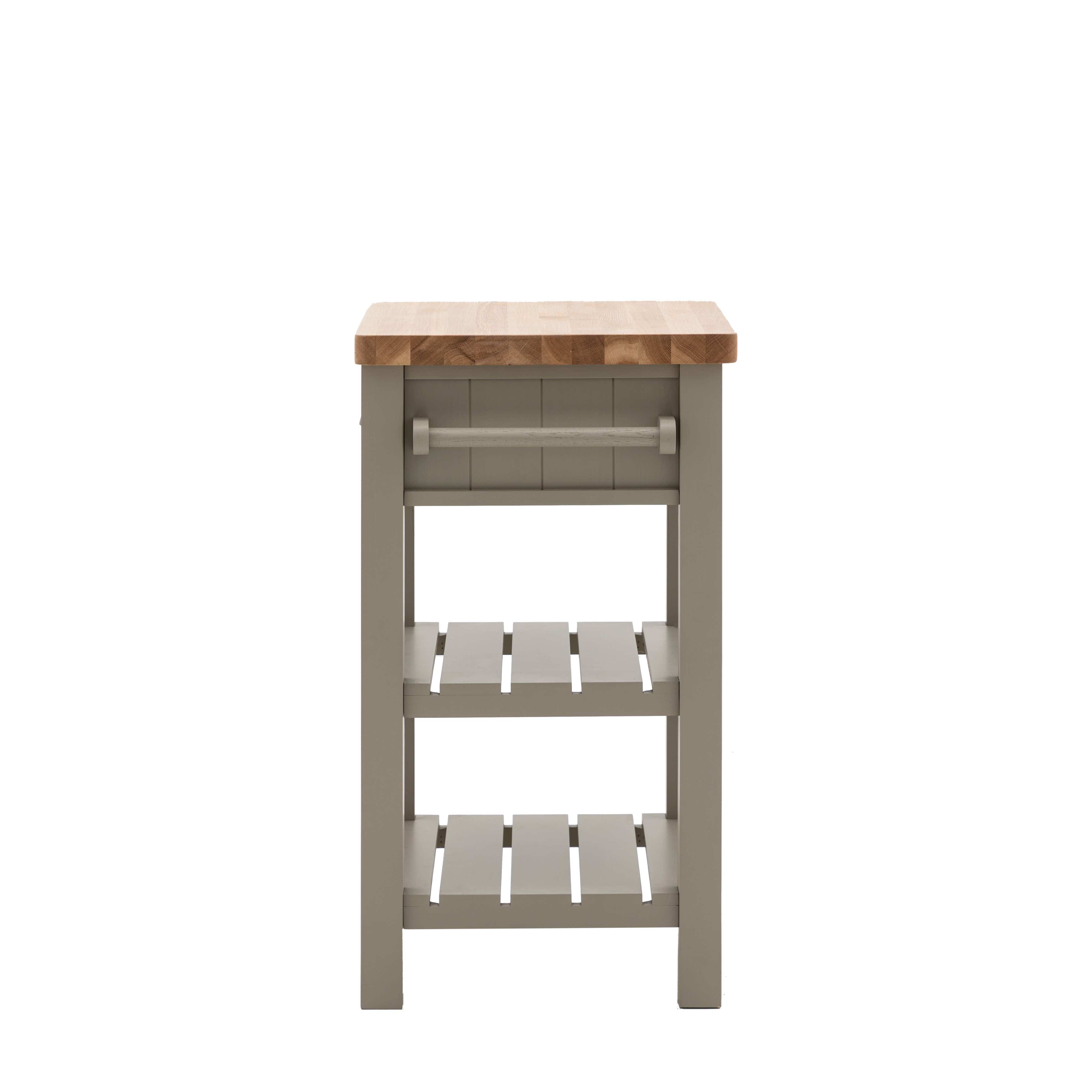Add a little extra workspace and storage to any kitchen. With a solid oak top sturdy enough for daily use, 2 shelves, handy hanging rail and drawer, this butchers block is a practical addition to any kitchen. With its hand painted base and metal drawer handles, this block offers a modern take on traditional style.