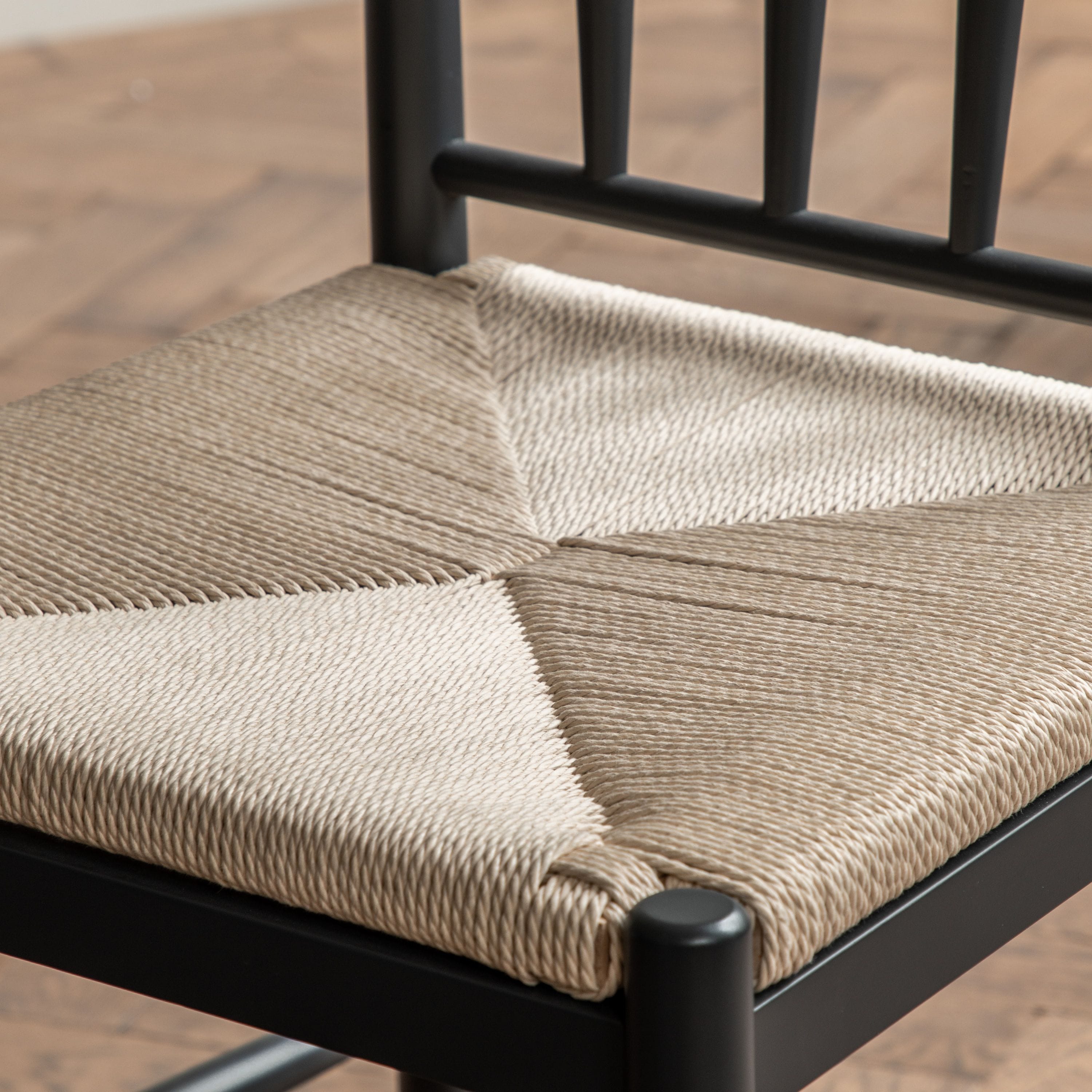Introducing the Chapel Dining Chair 2pk - Meteor, the perfect addition to your dining area. These chairs offer a modern twist on a classic farmhouse design, with a hand painted timber frame and traditional hand woven rope seat. Not only do they add a touch of style to your space, but they also provide comfort and durability.