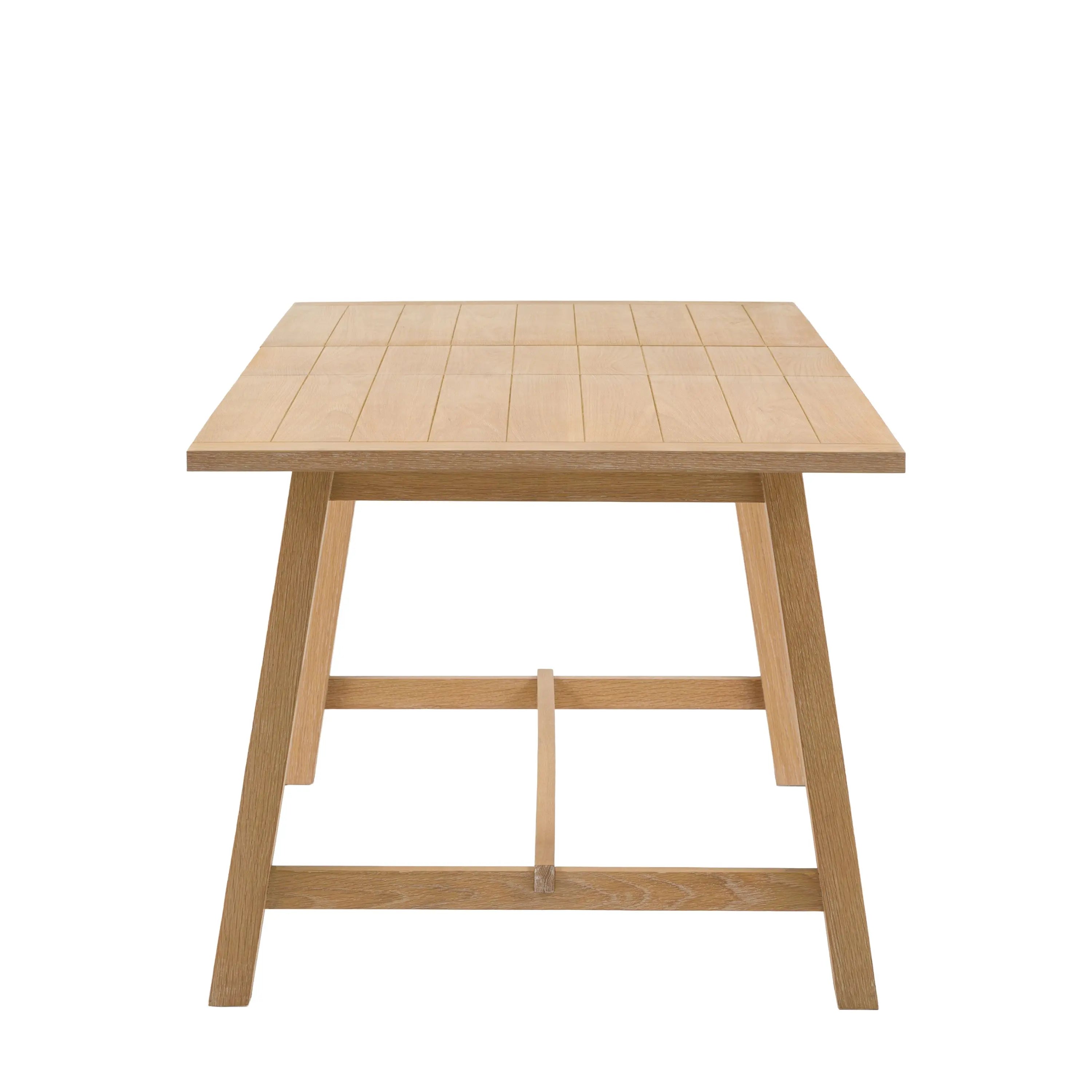 An update on a country kitchen classic, this trestle dining table easily adapts to your needs, expanding and offering even more dining space when required. The grooved & planked top is complemented by chunky angled legs for real country charm. Due to the handmade nature of this product, colour variations may be present.