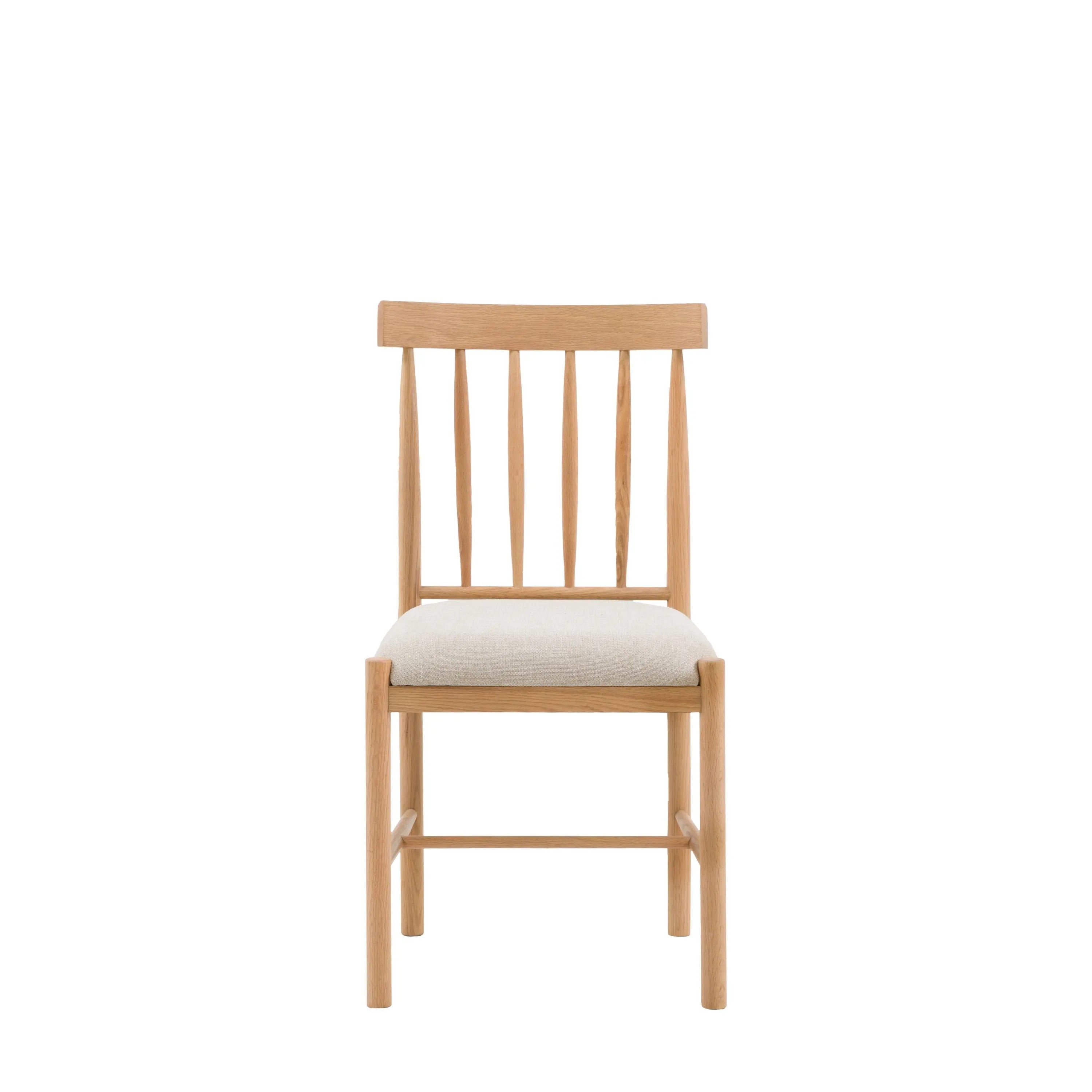 Set of 2 dining chairs perfect for creating a cosy dining area. With modern lines and traditional features, these dining chairs offer a modern twist on a classic farmhouse chair. The solid oak frame is paired with a comfortable upholstered seat . Due to the handmade nature of this product, colour variations may be present.