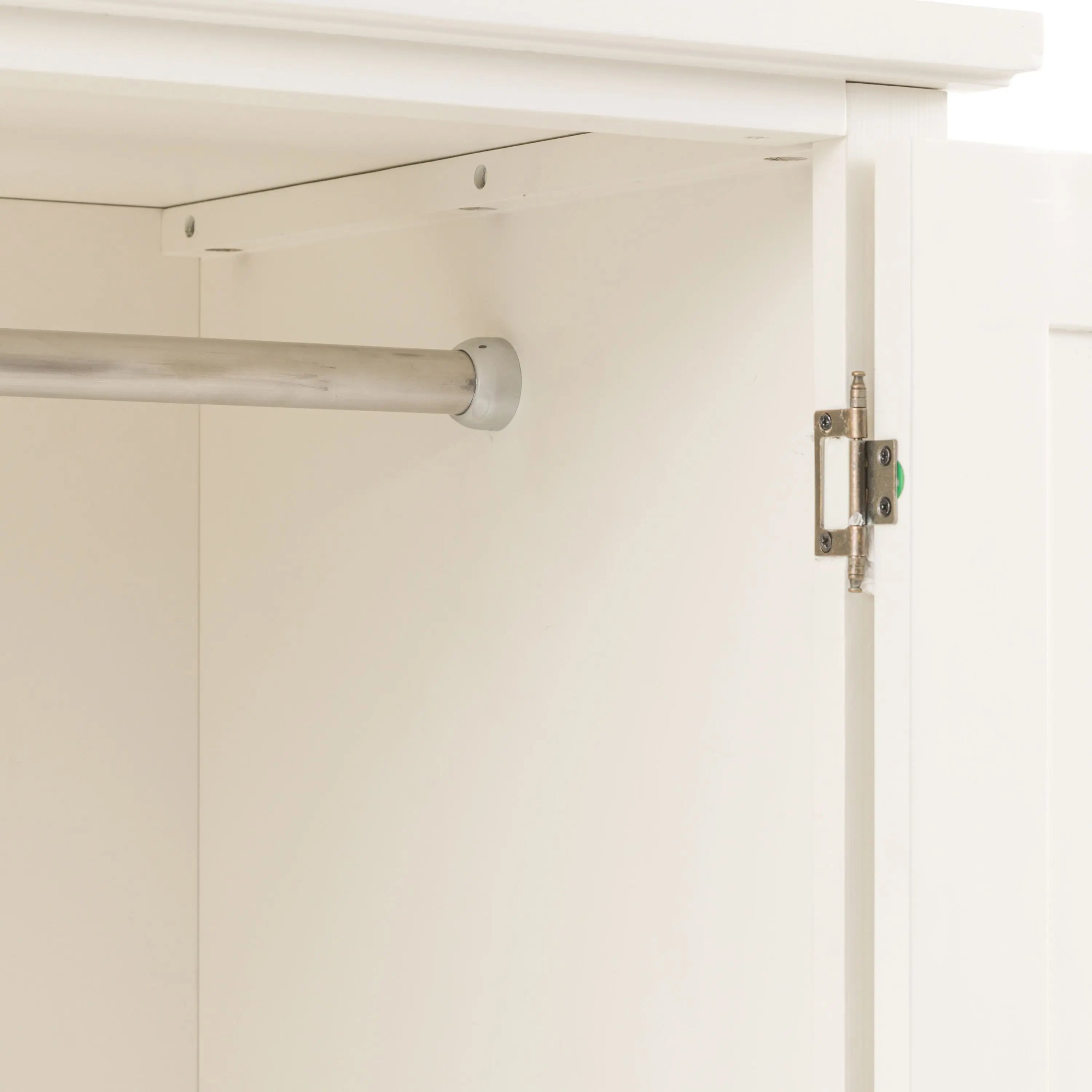 Full of classic country charm, this 2 door & 1 drawer wardrobe offers ample storage. The generous hanging space and large single drawer provide plenty of space for clothes and linens. The painted white finish complements the simple, traditional lines and metal handle and hinge details to create a charming addition to any bedroom.