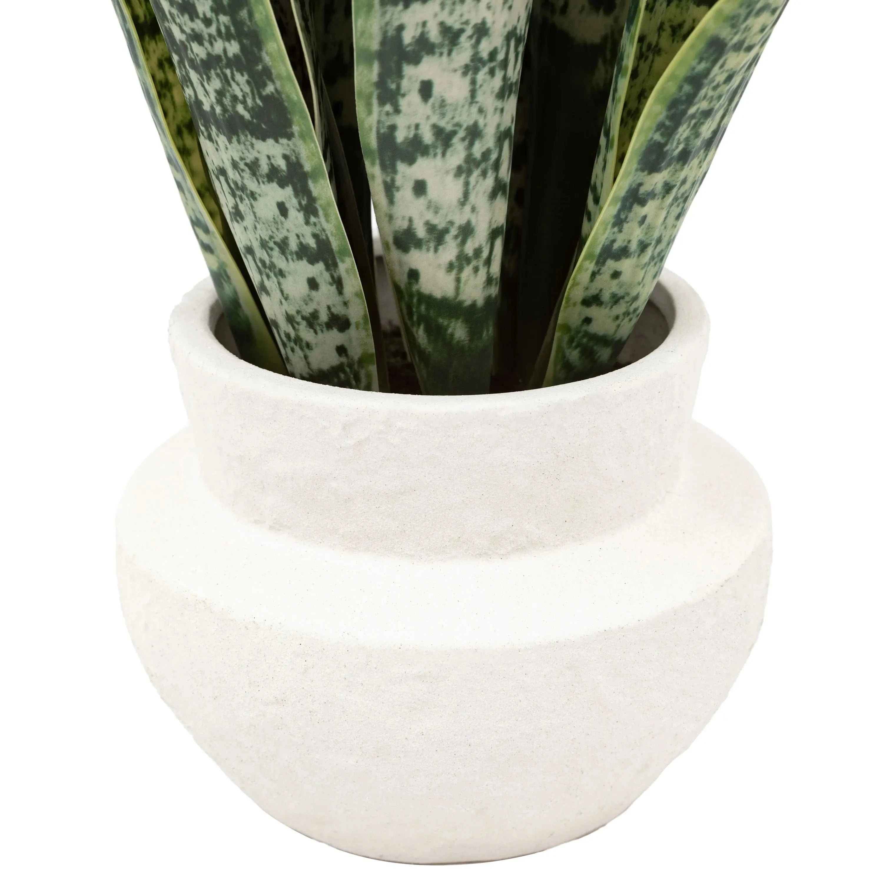 Introducing the Faux Snake Plant in Ceramic Pot from House of Isabella. This stunning plant adds a touch of greenery to any room, with its realistic leaves featuring the distinctive pattern of a snake plant. The plant is perfectly complemented by a matte ceramic pot, making it a stylish addition to your home decor.