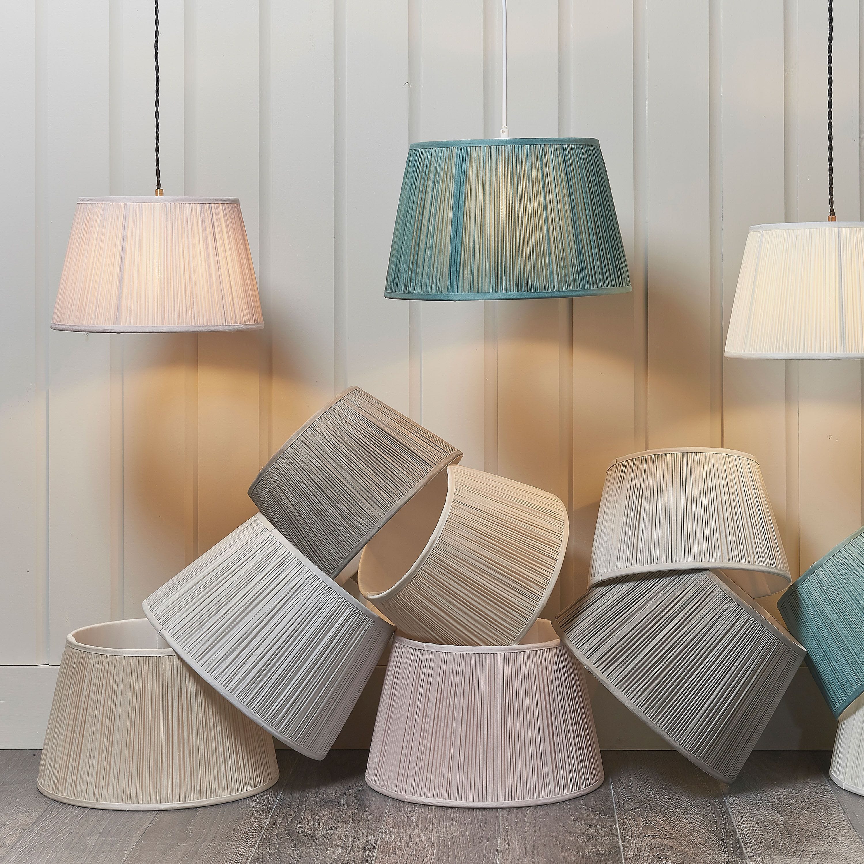 12 inch charcoal silk shade. The Freya is a gorgeous collection of gathered pleat silk shades in a range of stylish classic colours.