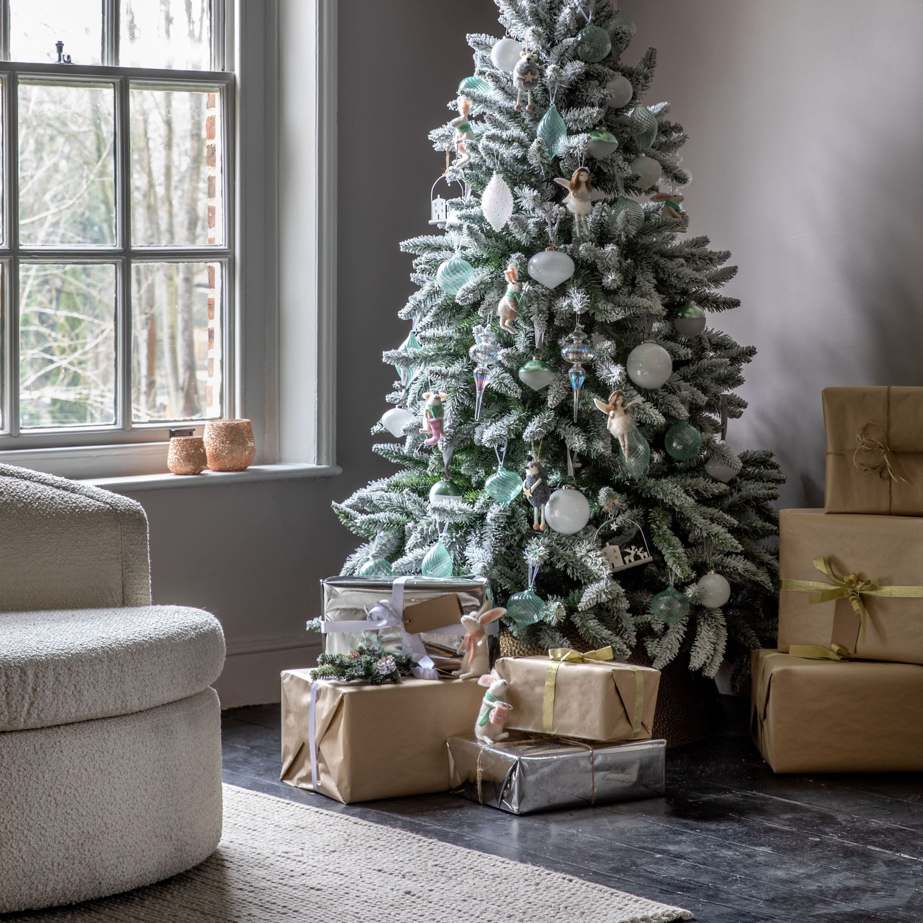 A cute set of two decorations bringing a bit of fun and life to any tree, featuring two hares with charming blue scarves and a sparkling present that's sure to catch the light on any tree.