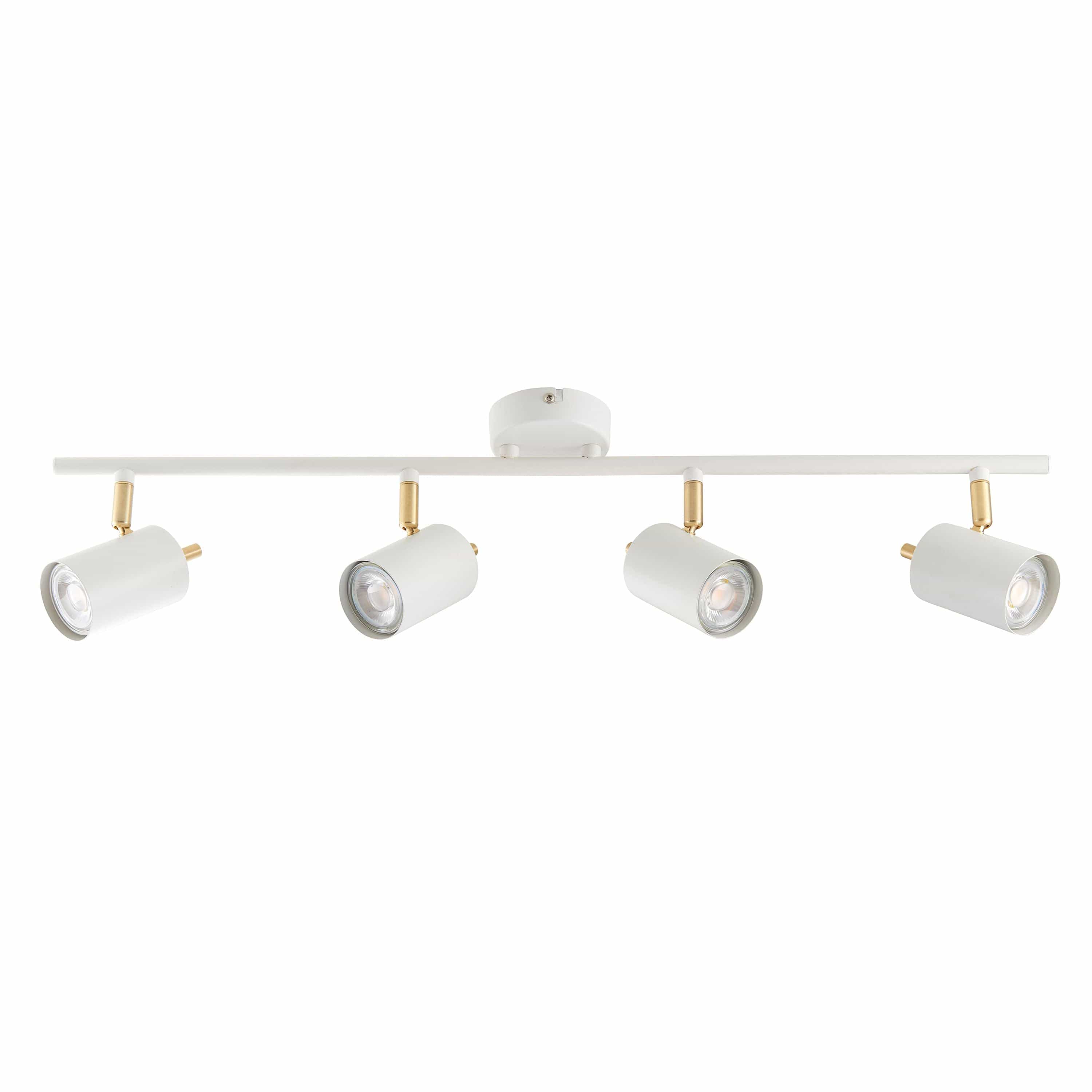 Adjustable LED spotlight supplied with a 3.5W LED GU10 lamp, finished in matt white and satin gold effect trim. An energy efficient fitting which can also be wall mounted. Triple and bar options also available