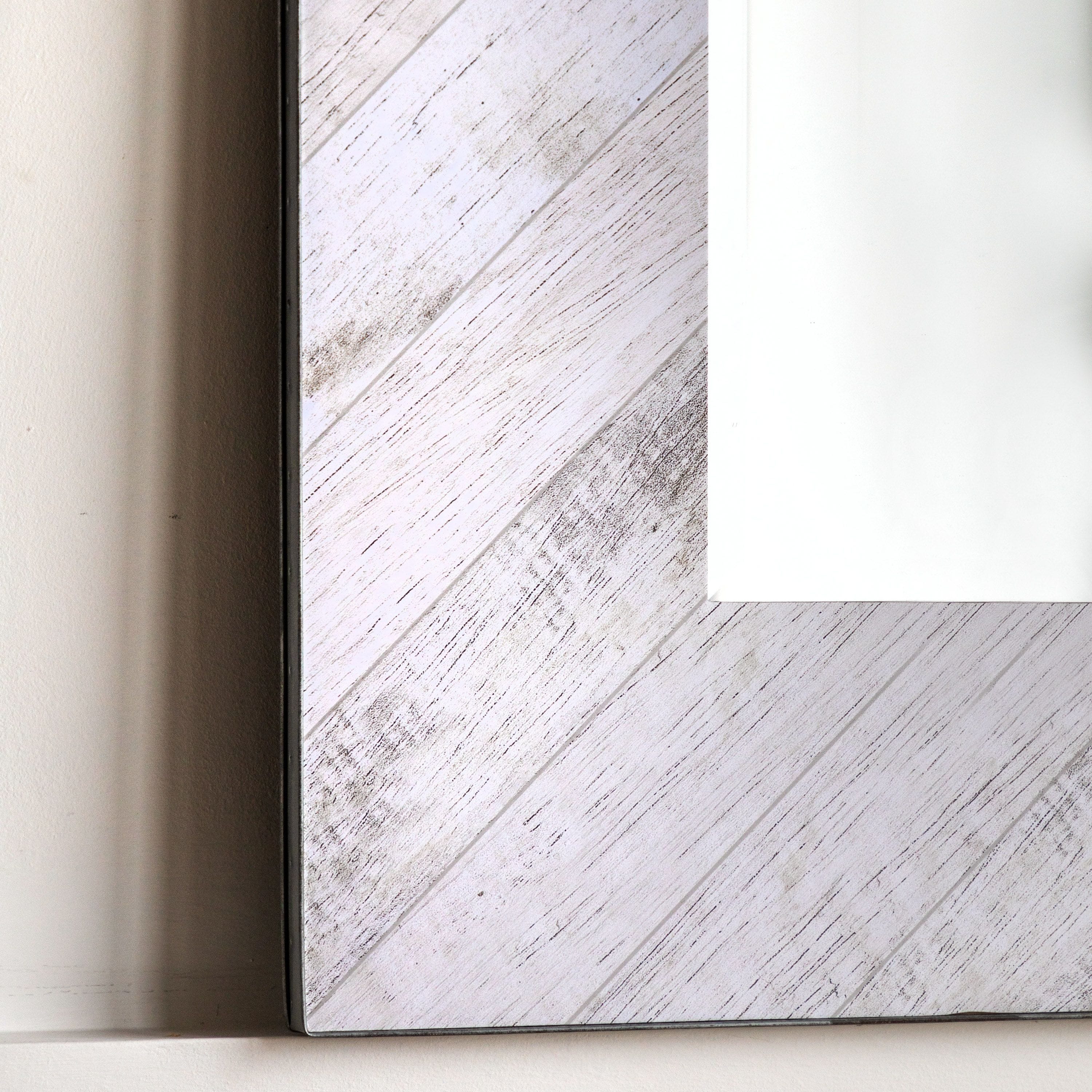 Introducing our stunning round mirror, a perfect blend of industrial chic and rustic charm. This unique piece features a sleek metal edge that exudes modern sophistication, seamlessly paired with a thick, whitewashed wooden frame that adds warmth and character. The wood's natural grain subtly shines through the whitewash, offering a timeless appeal that enhances any space. Whether you're aiming to elevate your living room, hallway, or bedroom, this mirror is a versatile statement piece that brings together contemporary style and classic elegance.