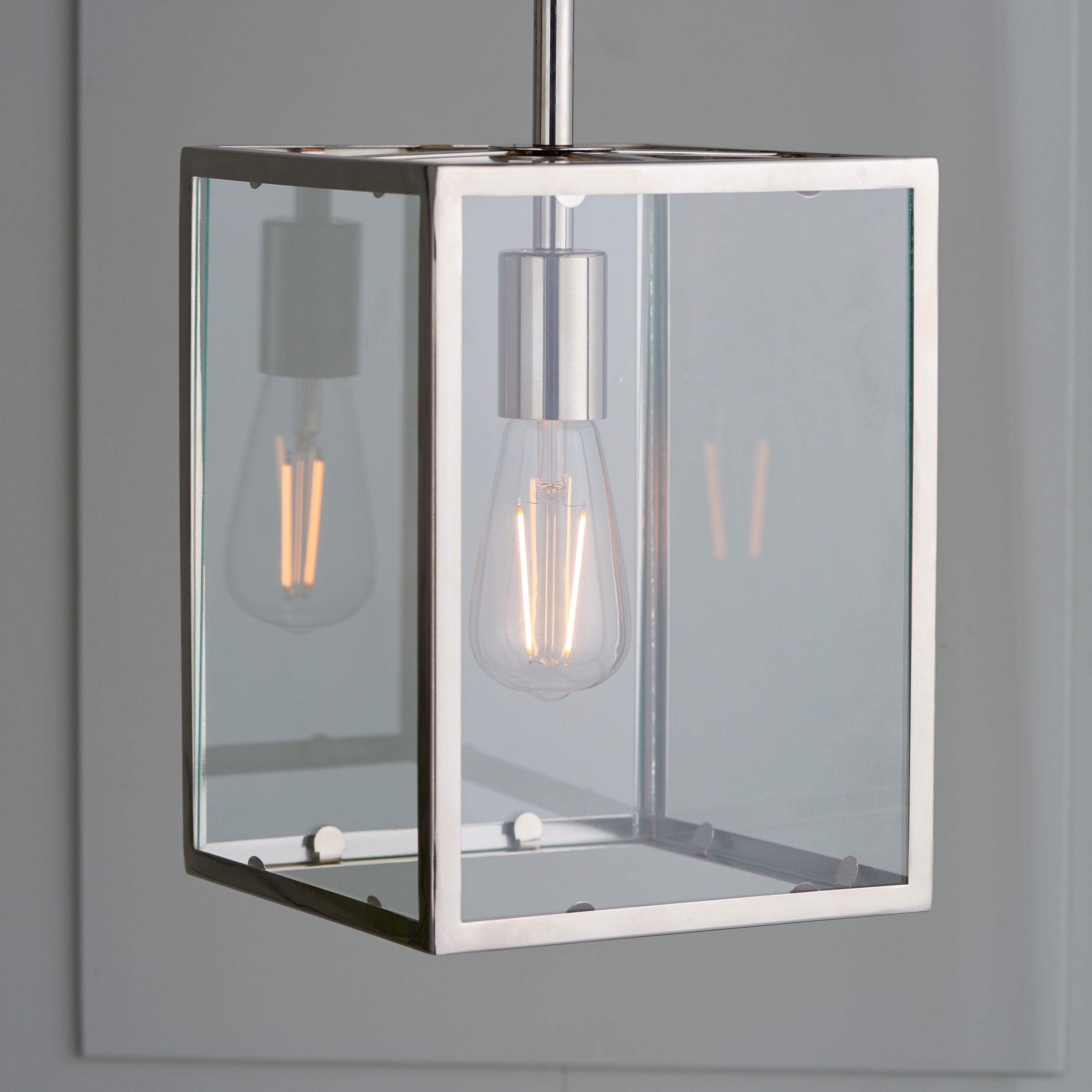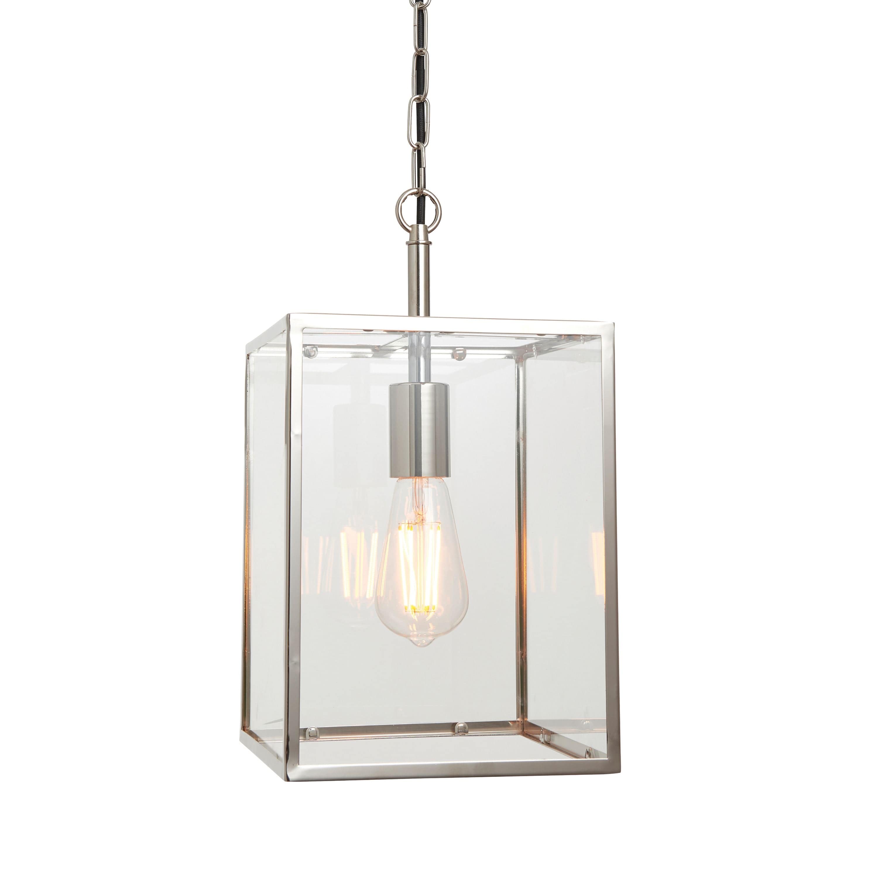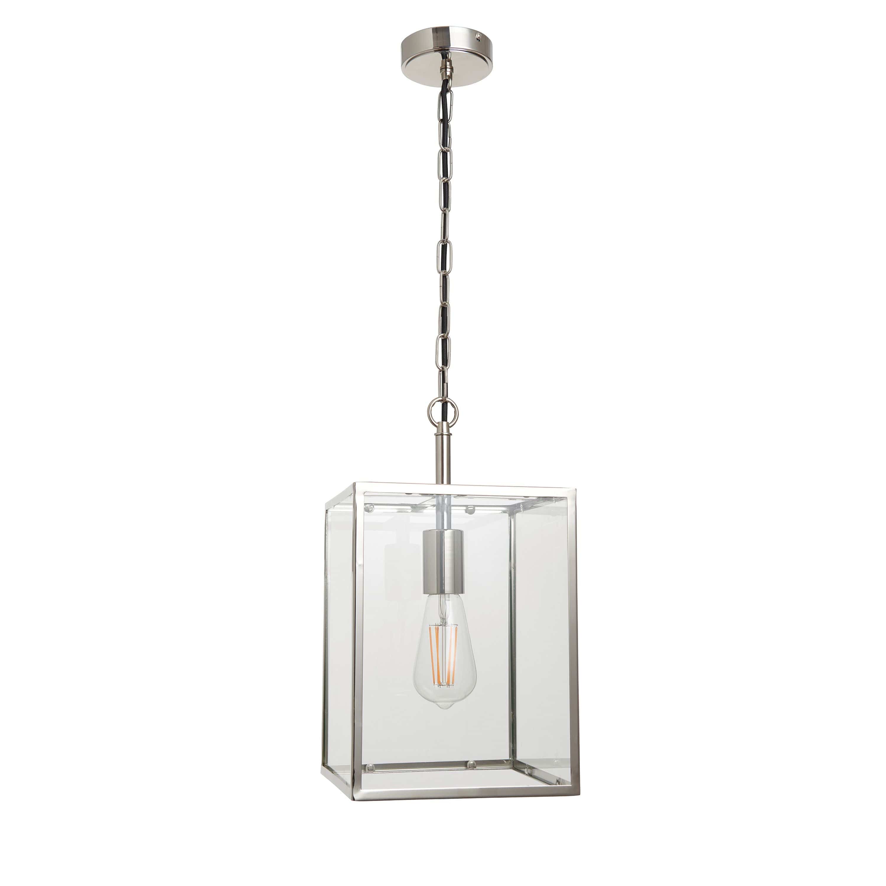 Introducing the Castallack Pendant Light, a timeless and authentic addition to any interior. Inspired by box lanterns, this pendant light is the perfect compliment for today's relaxed classic interiors. With its bright nickel finish and suspended from a height adjustable chain with black fabric flex, this light exudes elegance and sophistication.