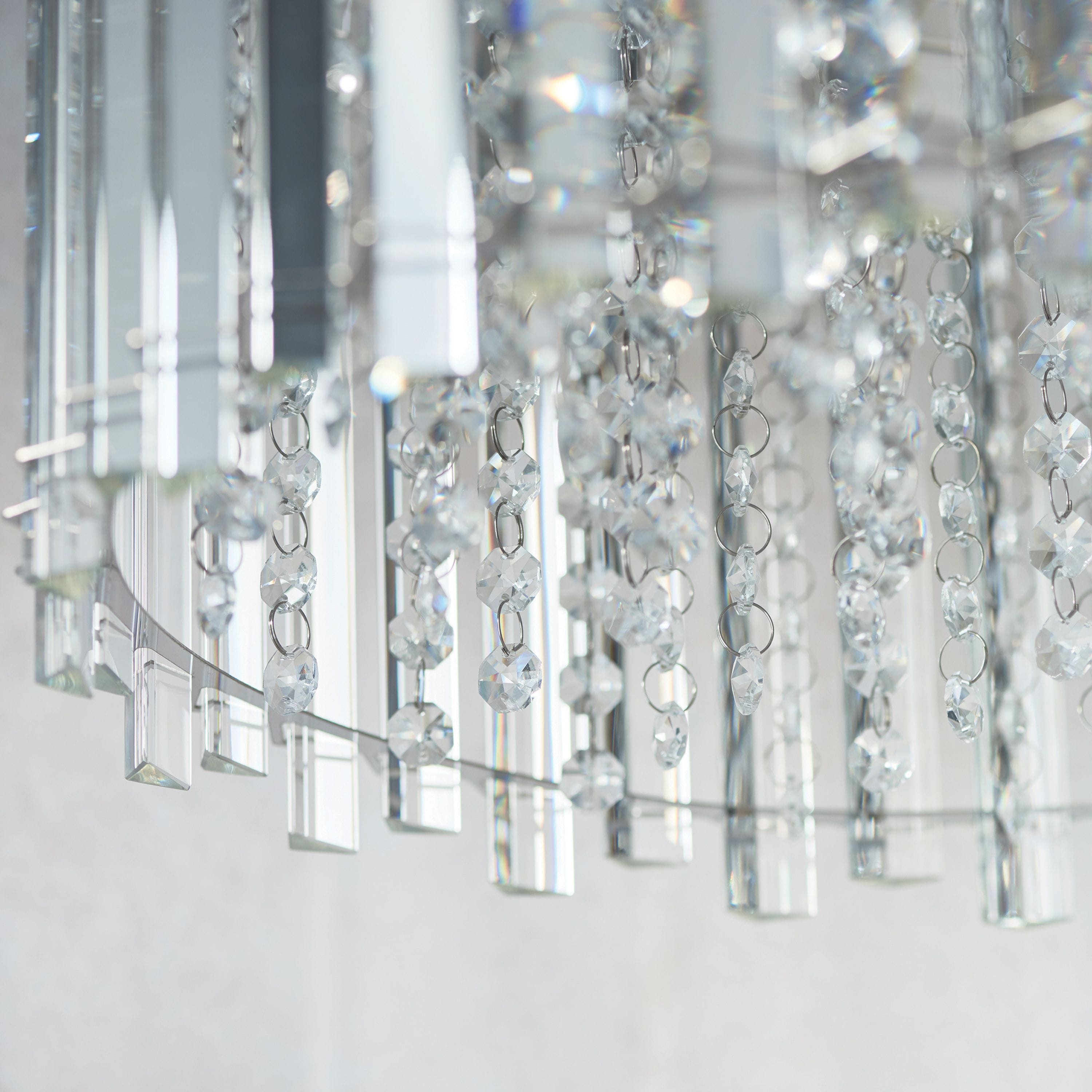 A beautiful high quality, reflective clear crystal ceiling pendant, filled with faceted glass droplets for an opulent addition to your most loved interiors. Suspended from height adjustable cables with clear flex. Complete the look with the matching ceiling flush and wall light.