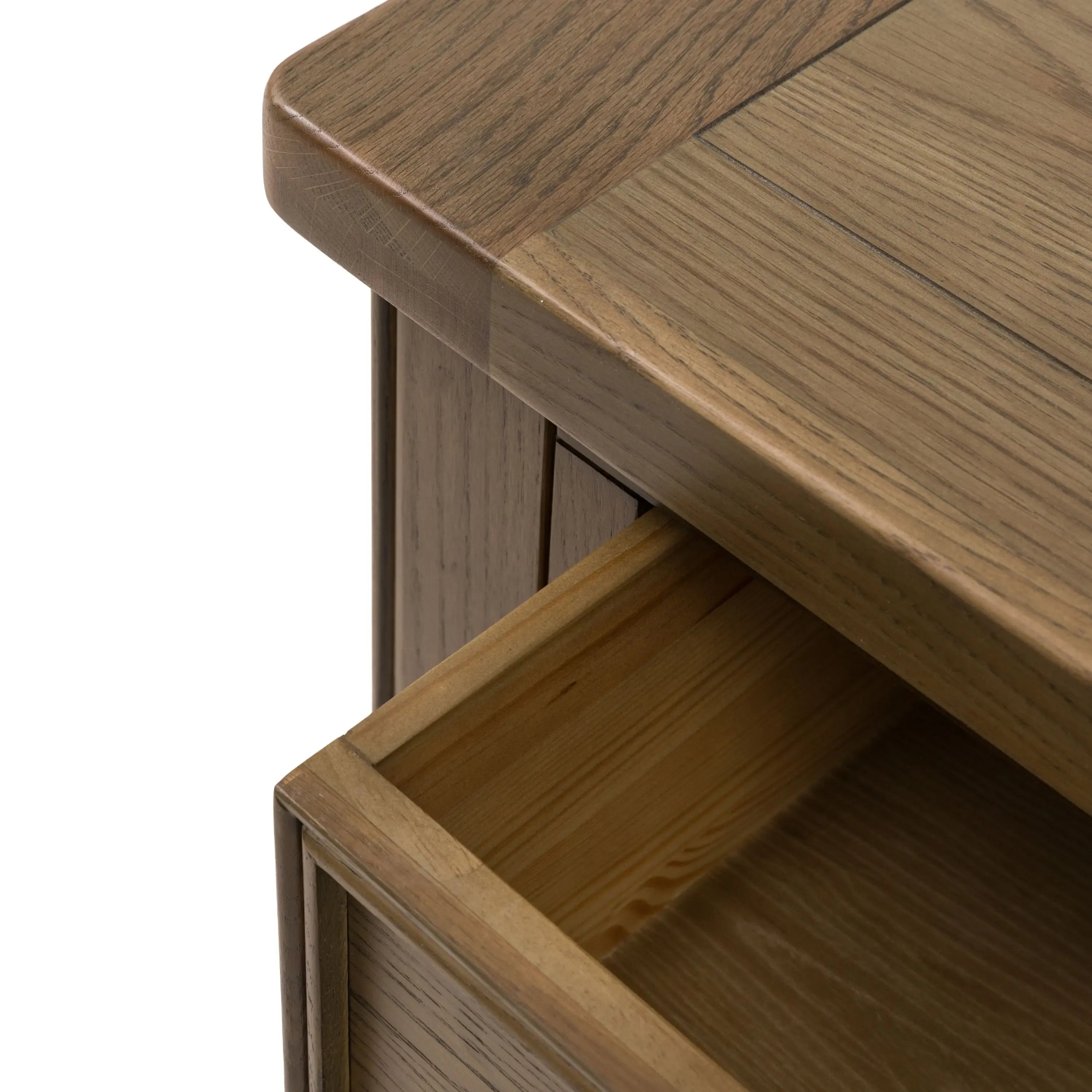 Complete your living space with this elegantly practical coffee table. Crafted from natural wood solids & veneers, this table features two spacious drawers finished off with classic metal handles, perfect for keeping essentials neatly out of sight. The finishing details, warm wood, full of rich grains and a timeless interpretation of classic design make this stunning centrepiece for any living space, full of long lasting appeal.