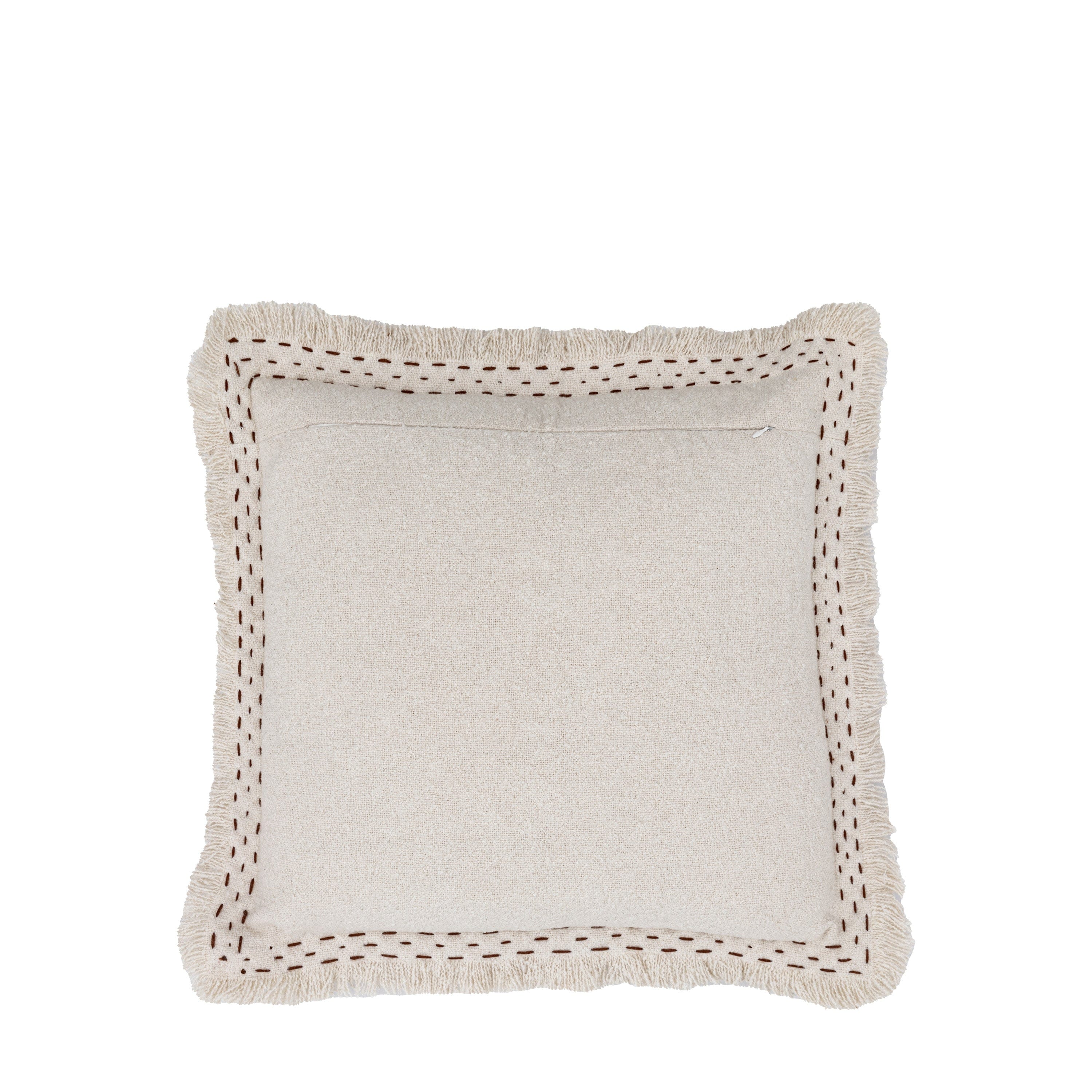 Soft and tactile, this textured plain cushion forms part of our collection of globally inspired, handcarfted Indian textiles. Featuring a richly textured weave and hand stitched detailing around the feathered edges.