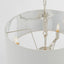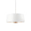 The Harvey 3 light pendant is finished in brushed satin gold plate, complemented by a vintage white, faux silk shade with metallic gold inner, for the perfect sophisticated boutique hotel look. Matching items also available.