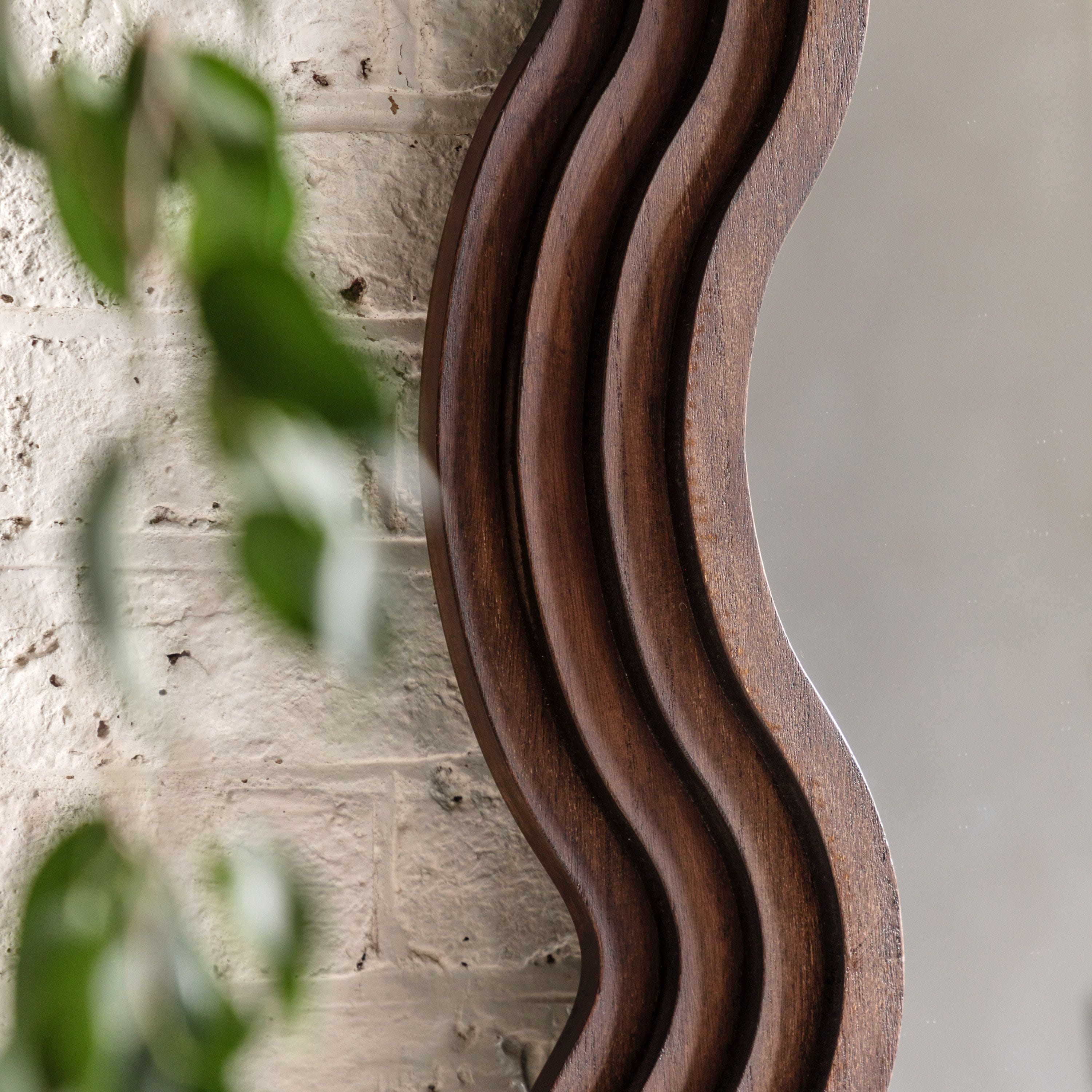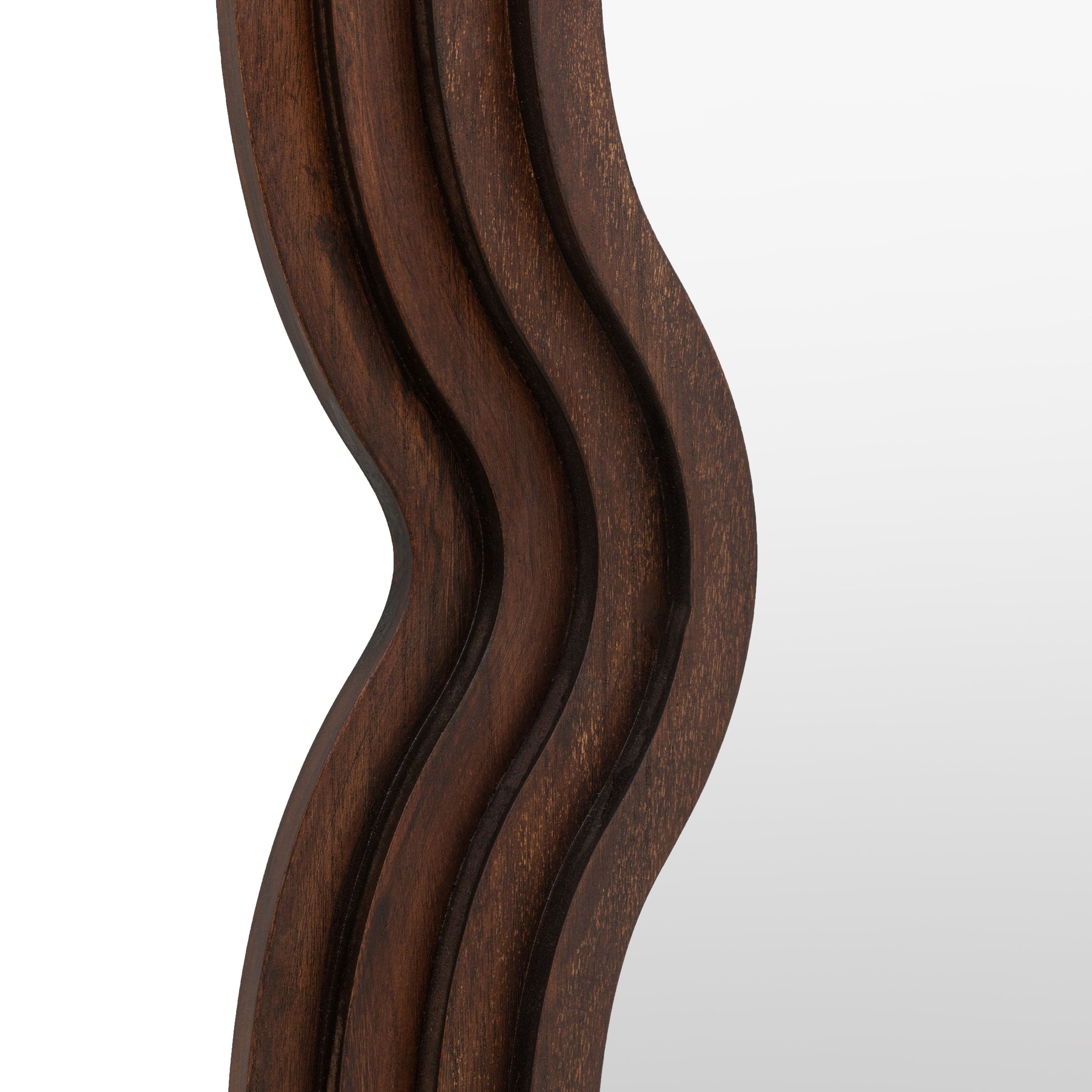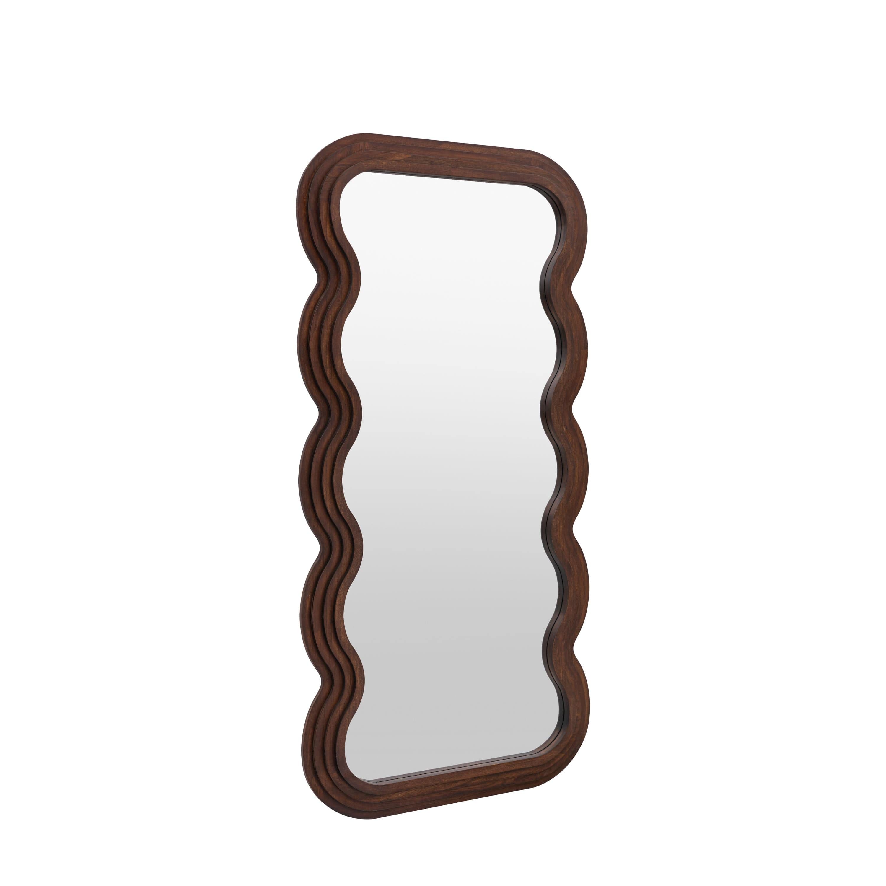 Introducing the Haskel Mirror Large from House of Isabella - the perfect addition to elevate your home decor. This stunning brown wooden leaner mirror features a unique wavy edge, adding a touch of fluidity to any space. The layered inset frame adds depth and texture, creating a rich and dimensional look. With its warm brown wood frame, this mirror exudes natural elegance and is sure to make a statement in any room.