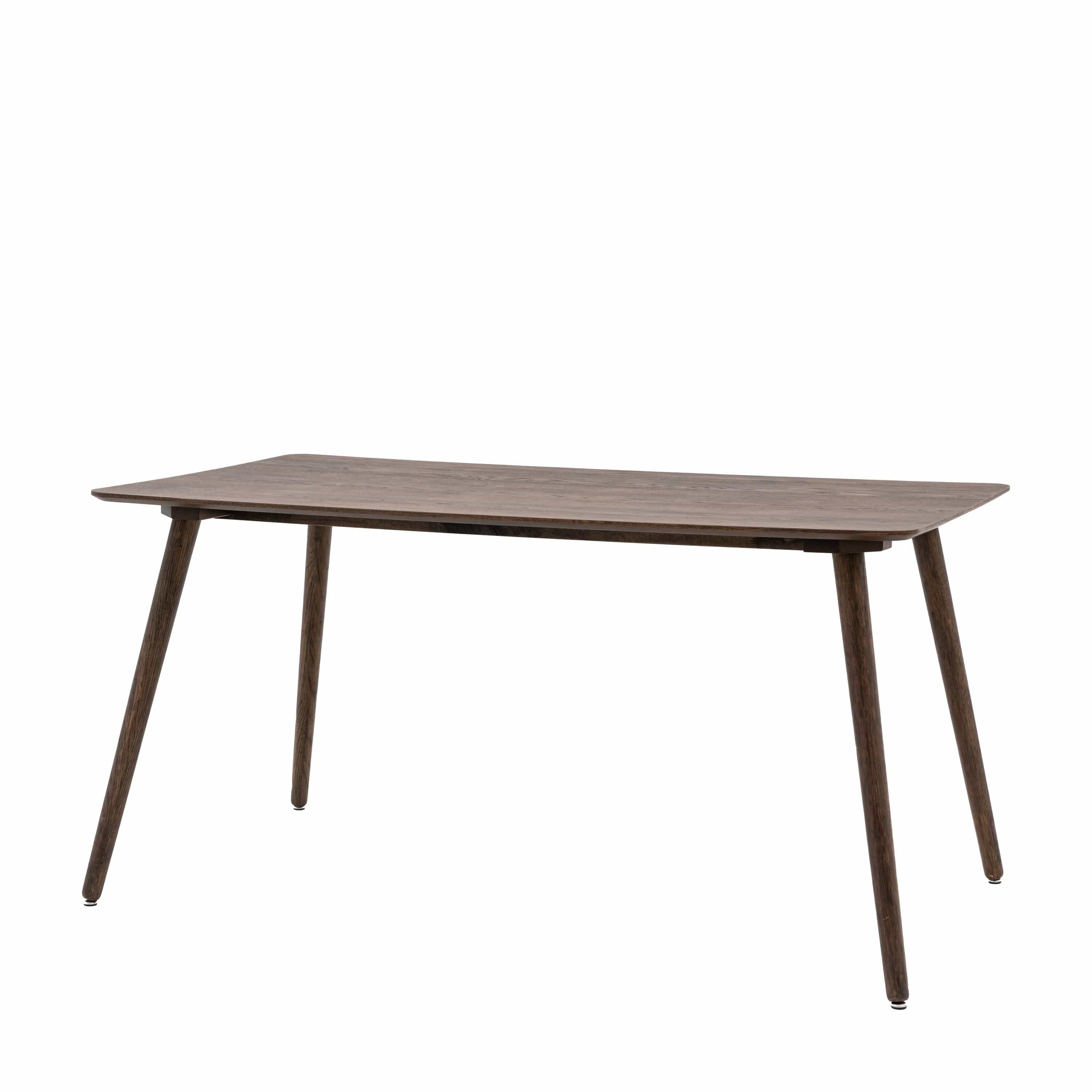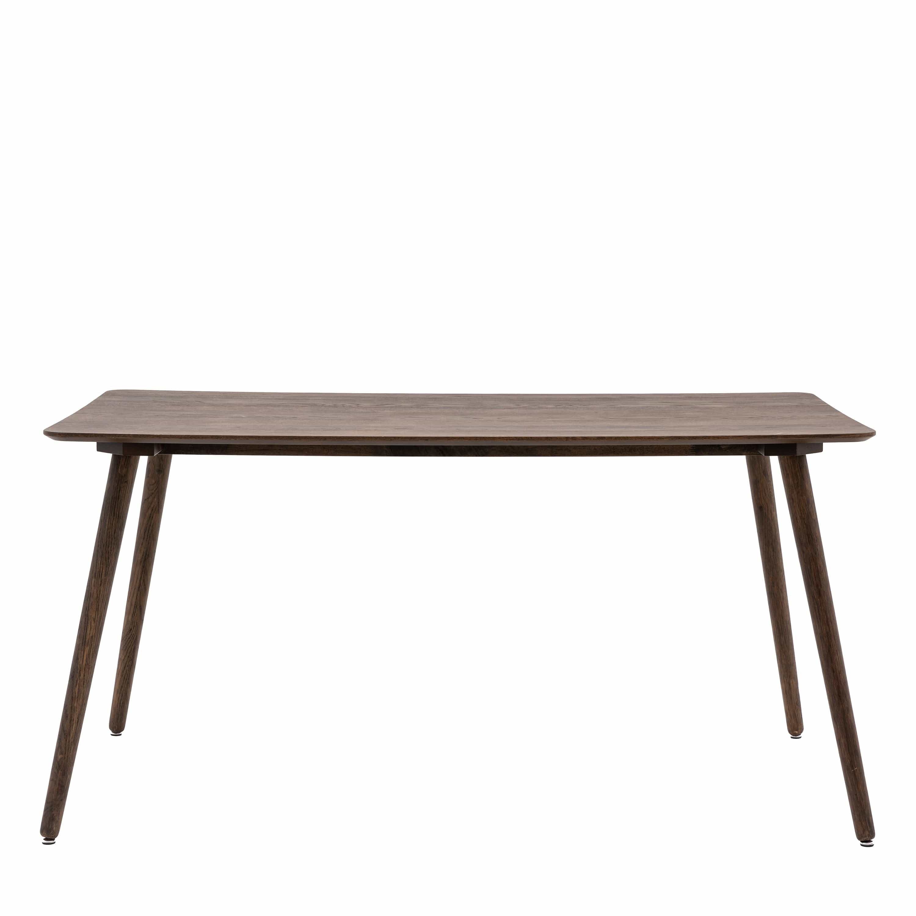 This lovely dining table is ideal for smaller spaces. It offers a retro feel with a contemporary touch. The beautiful shaped top is perfectly complemented by the elegant legs. It is crafted from oak veneers and rubberwood with a natural finish. The table is also available in a smoked oak finish, and matching pieces are available.