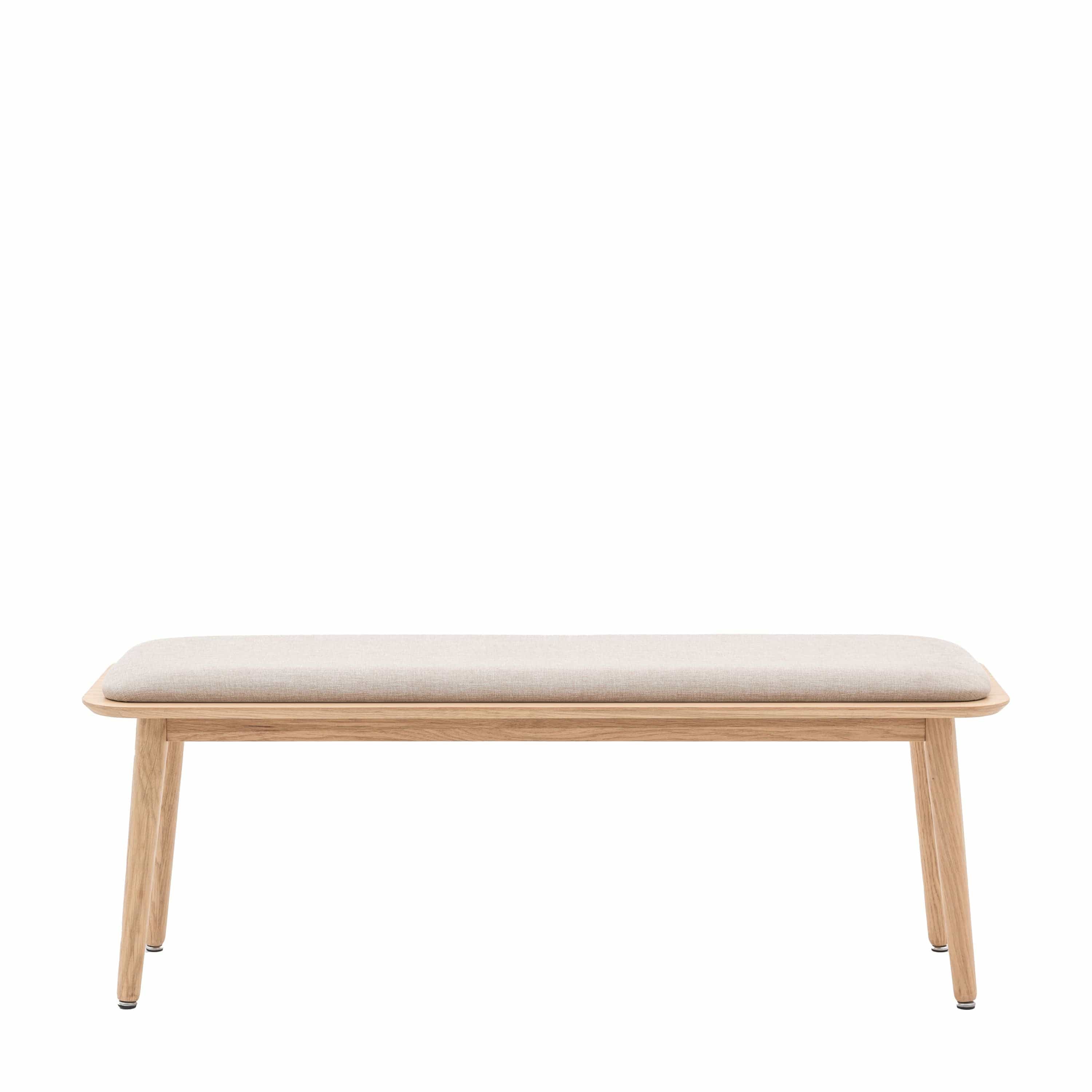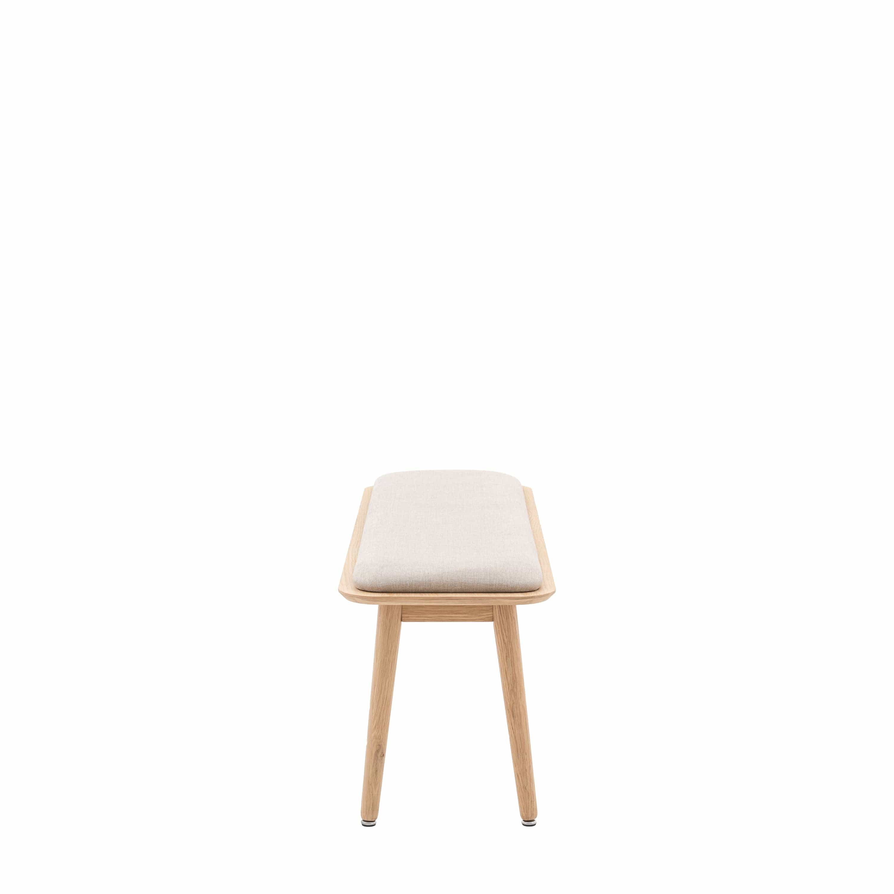 Introducing the Hatter Bench Natural, a versatile and stylish addition to any home. Made with a durable oak frame and neutral fabric, this bench is perfect for the foot of a bed or in a hallway. Its contemporary design and natural finish make it a perfect fit for any interior style.