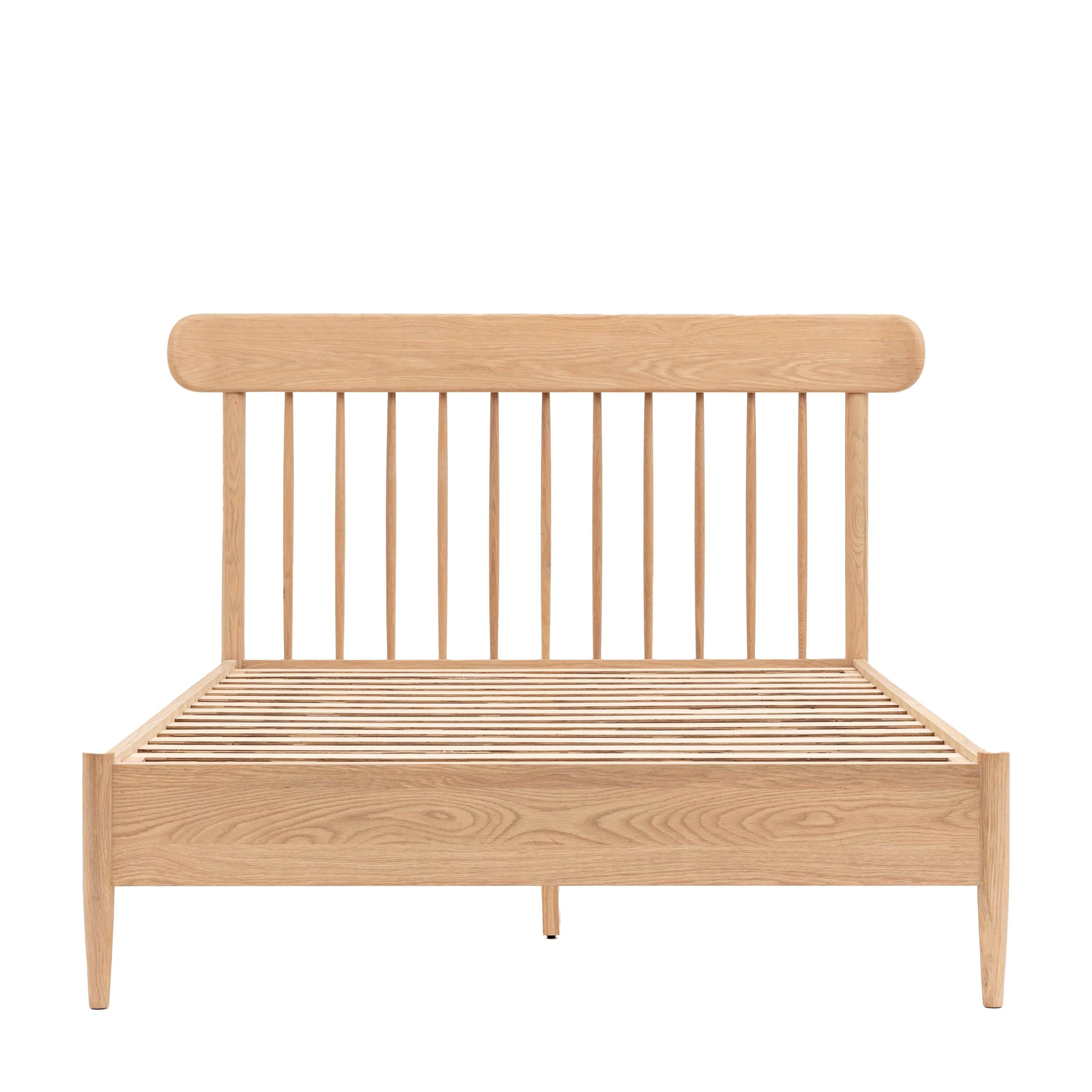 Introducing the Hatter King Spindle Bed Natural, a charming addition to any bedroom. This bed features a classic spindle design and a solid oak frame for both durability and aesthetic appeal. The natural finish complements a variety of interior styles, making it a versatile choice for any home.