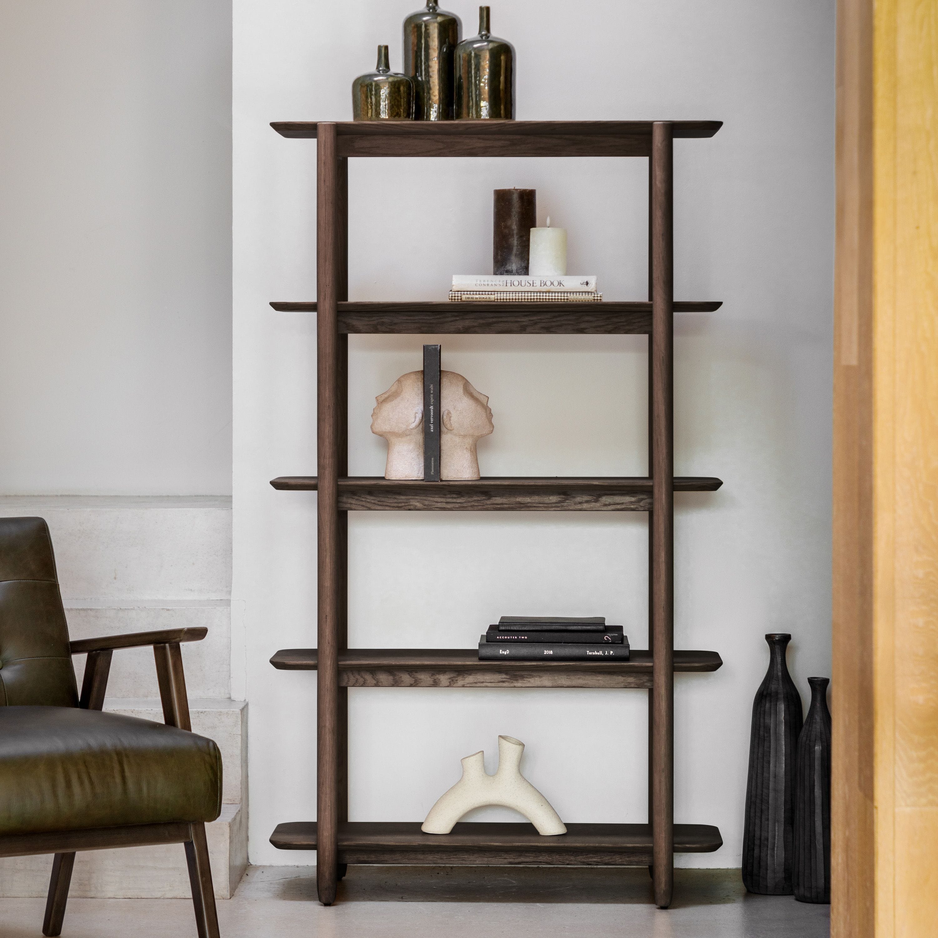 This open display in natural is a stylish and functional addition to any room. Its clean lines and oak construction create a minimalist and modern look. The three wide, spacious shelves offer ample storage space for books, plants, or decorative items. Perfect for adding a touch of Scandinavian style to your home.
