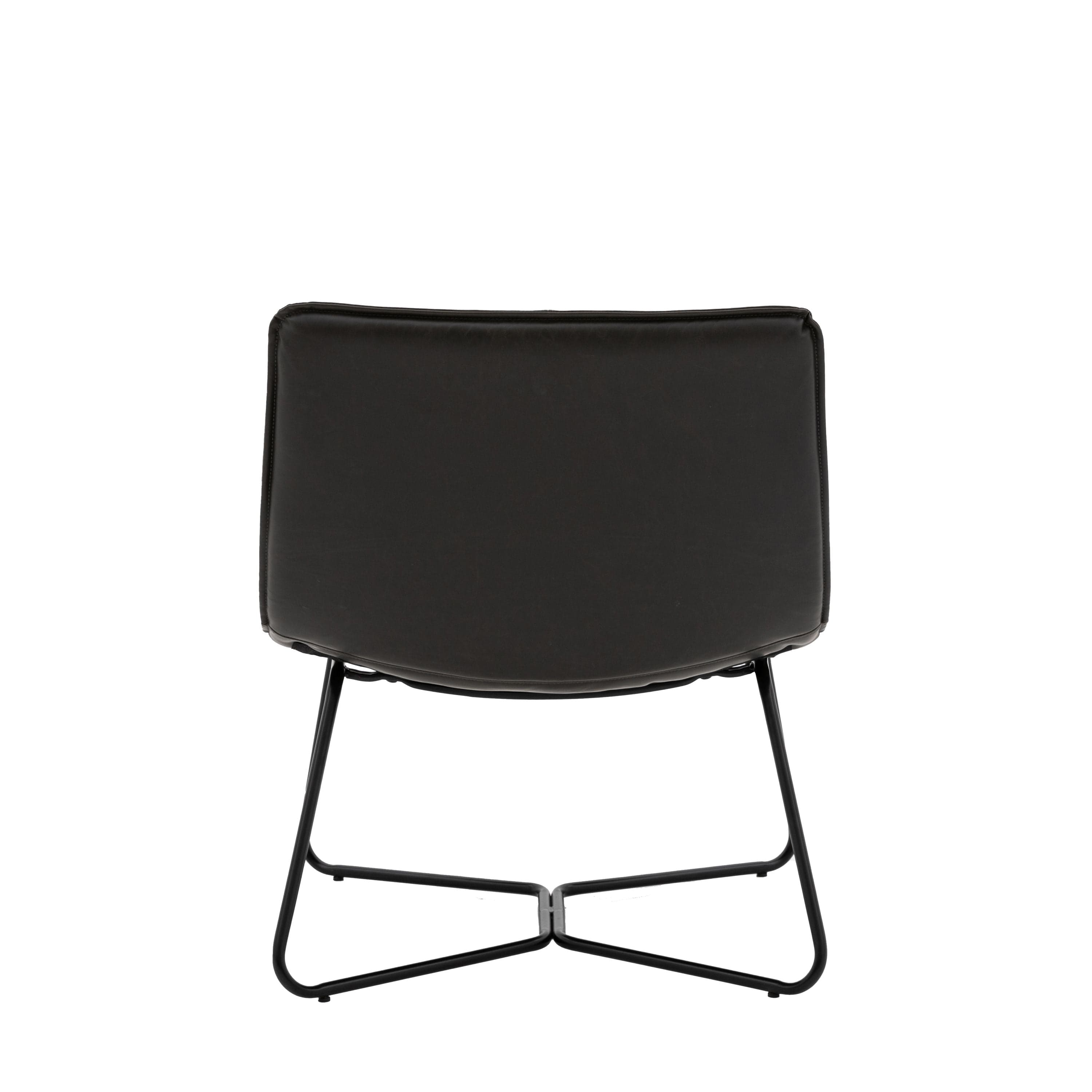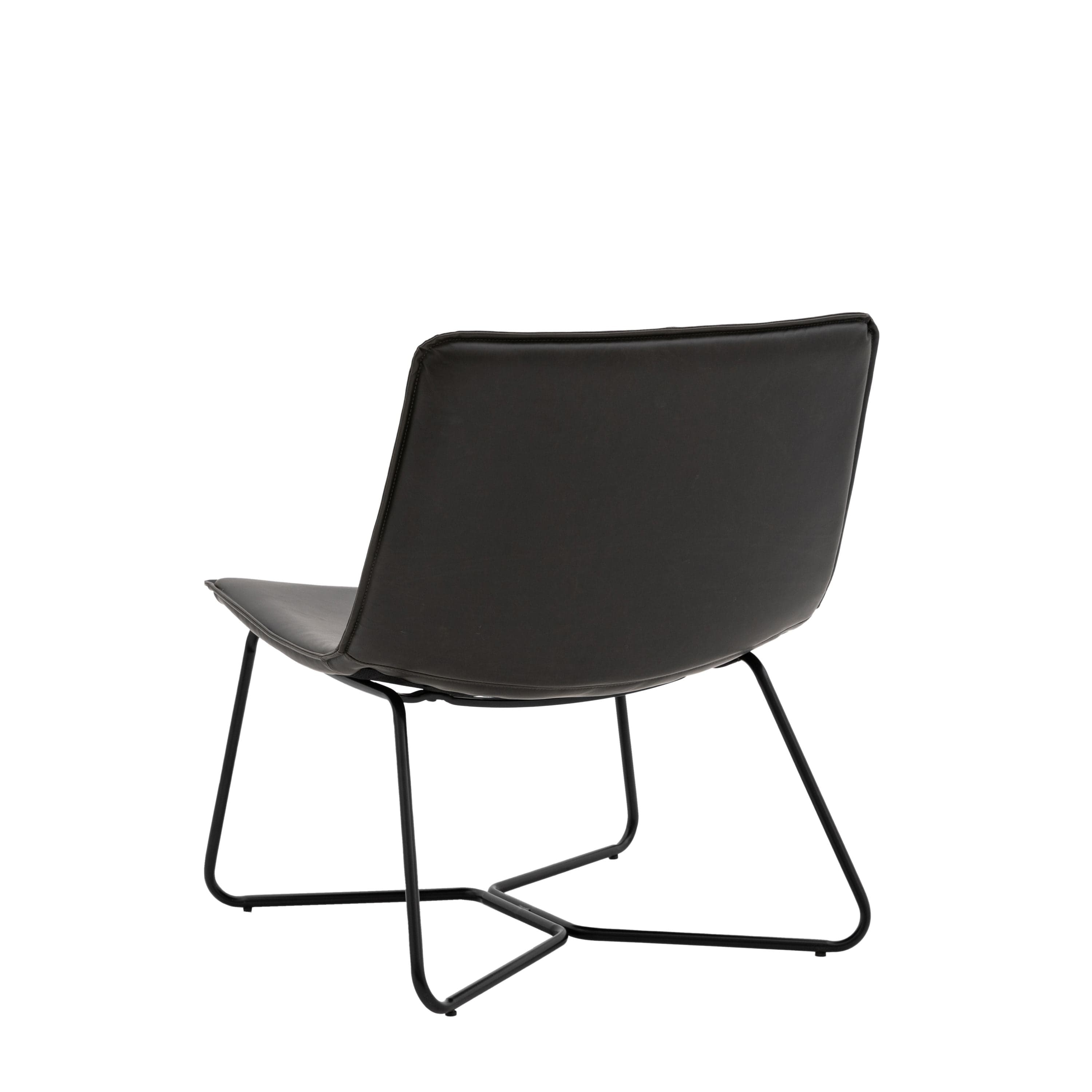 Introducing the Chardleigh Lounge Chair in Charcoal, the perfect addition to any modern home. This contemporary occasional chair not only exudes style, but also provides ultimate comfort. Its curved seat is upholstered in faux leather, giving it a sleek and luxurious look. The black metal frame adds a touch of sophistication to the overall design.