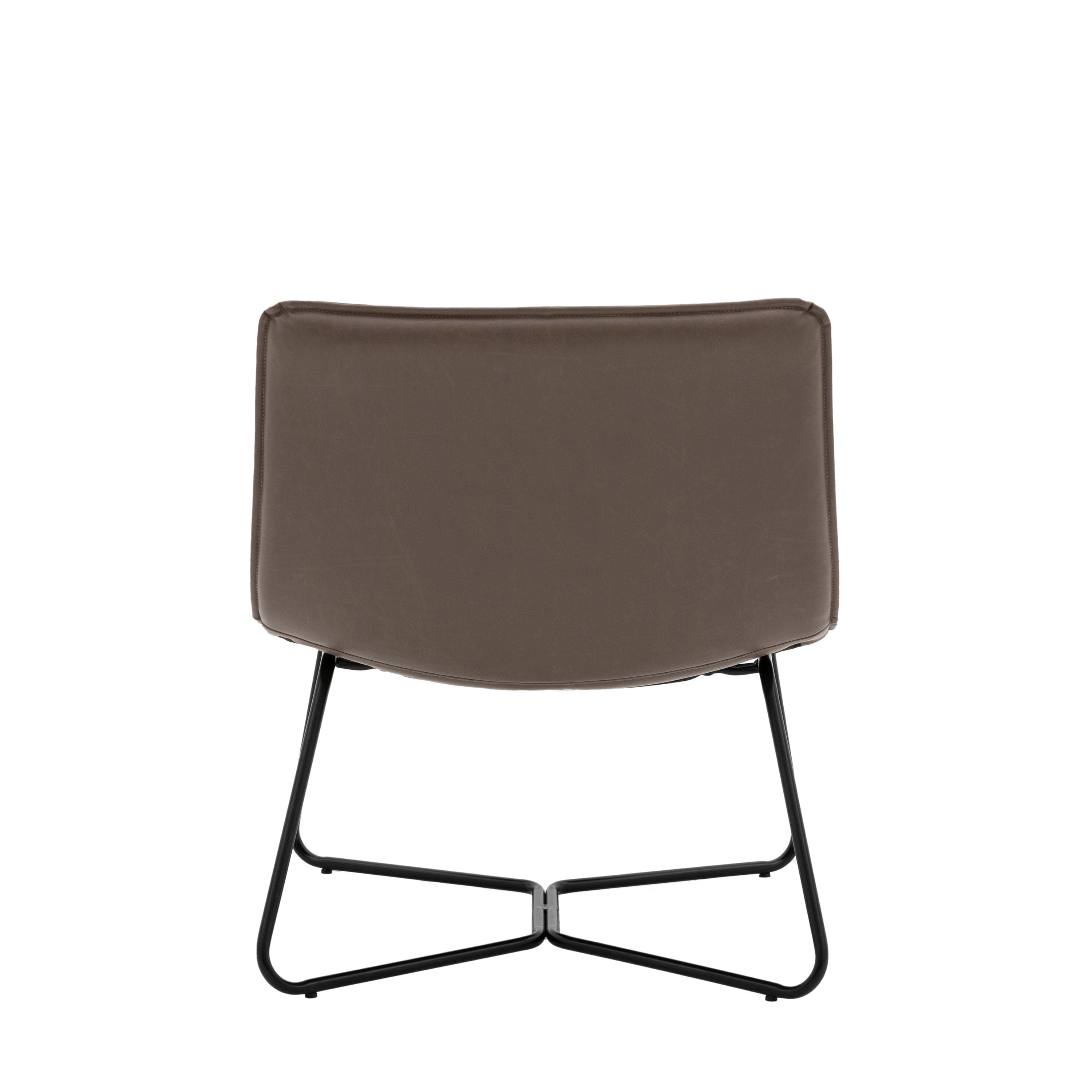 The Chardleigh Lounge Chair from House of Isabella is the perfect combination of comfort and style. With its curved seat upholstered in faux leather and sleek black metal frame, this contemporary occasional chair will add a touch of elegance to any room. Available in three different colors, it also has matching dining chairs and stools for a cohesive look.