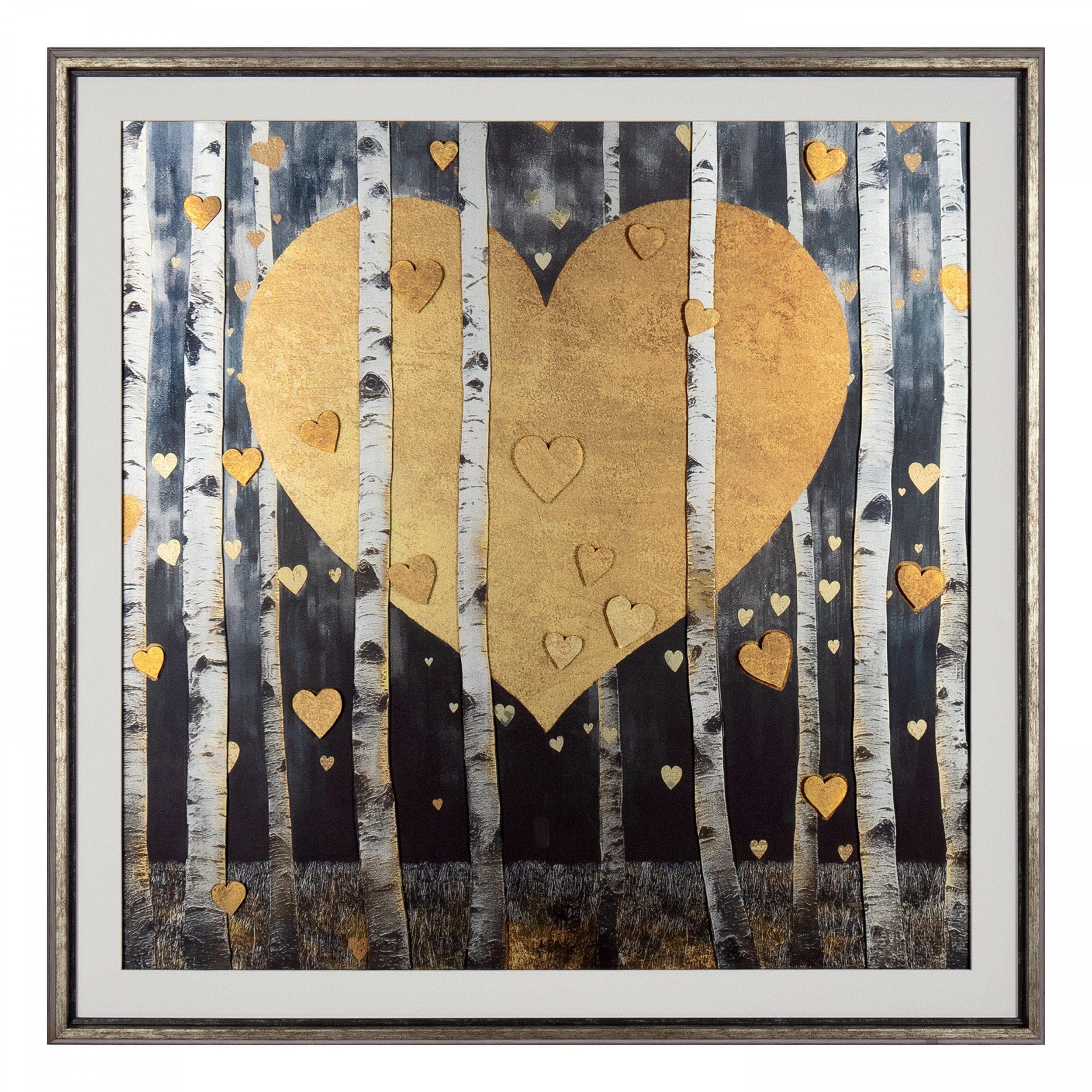 Embark on a captivating journey that seamlessly blends the allure of natural beauty with the intrigue of symbolic elegance. As you peer through the photographic silver birches, a suspended heart, brimming with warmth, love, and vitality, commands your attention. Faye Reynolds-Lydon orchestrates a mesmerizing union between nature and fantasy, igniting a sense of preciousness that is truly unique. The luminous silver base, raised layers and metallic foil highlights form a canvas for the enchanting dance of light and shadow to move around. The styling is complete with a white mount and a slimline wood effect frame with champagne silver edging.