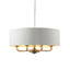 The Chickerell 8 Pendant in Antique Brass is a stunning addition to any home. With its vintage white fabric shade and gold metallic inner lining, it exudes sophistication and elegance. The antique brass plated metalwork adds a touch of timeless charm, making it the perfect statement piece for both modern and classic interiors.