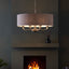 The Highclere pendant is a sophisticated mix of vintage white fabric shade lined with gold metallic inner and antique brass plated metalwork. This statement light is the perfect timeless addition to modern and classic homes of today.