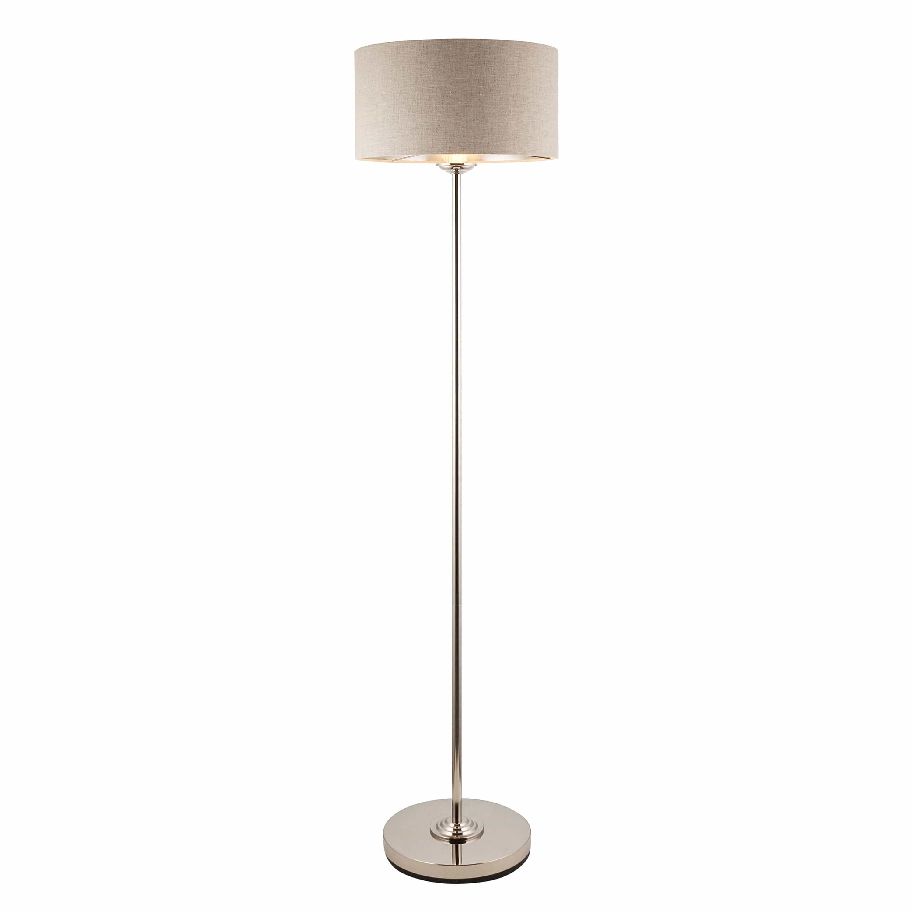 Introducing the Highclaire Floor Lamp Brushed ChRoman, a stunning addition to any modern or classic home. This floor lamp features a mix of natural linen fabric and reflective brushed metallic inner, paired with brushed chRoman metalwork for a sophisticated look.