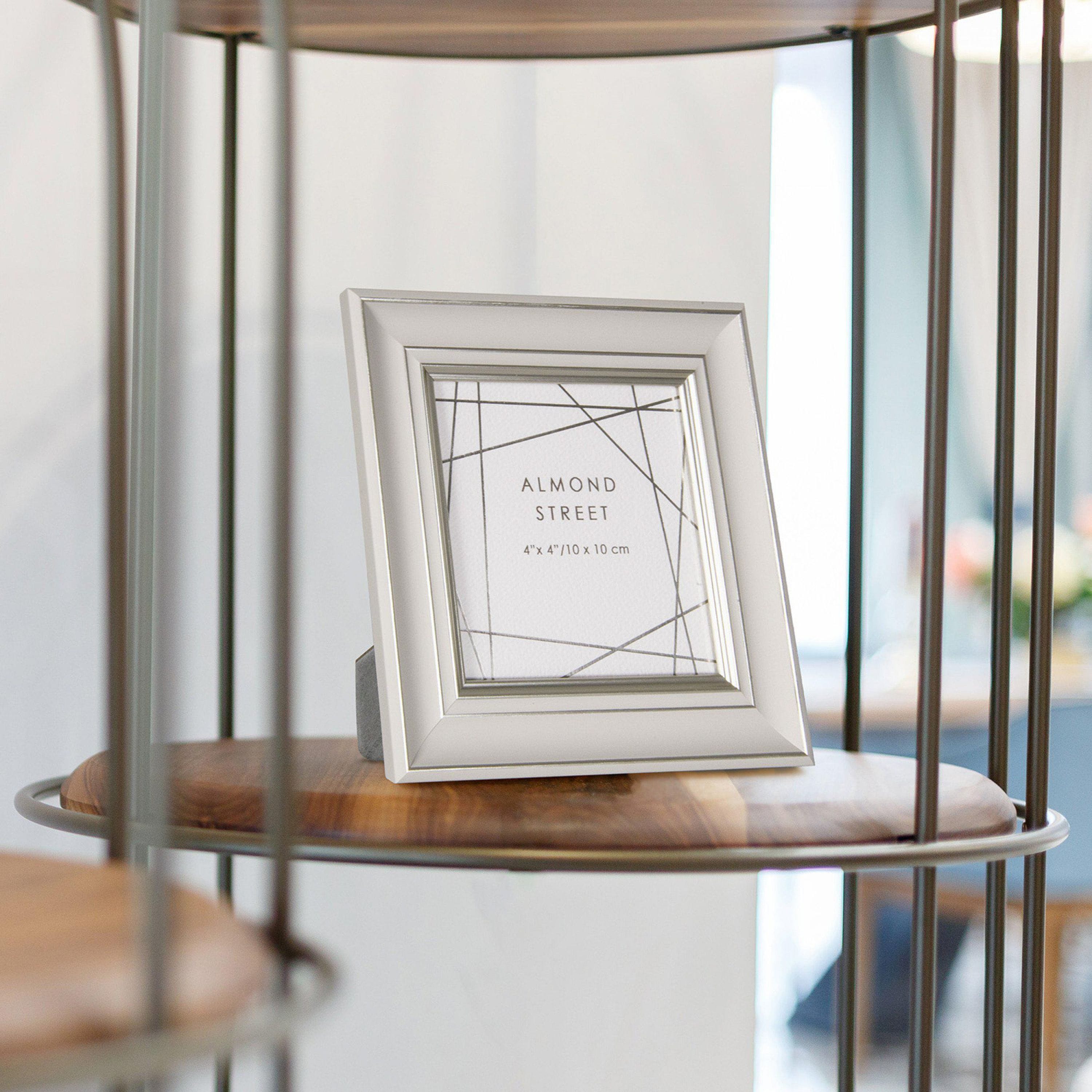 A simple pale grey matt frame is injected with life by the metallic highlights that pivot across the profile edges. A contemporary design with a traditional twist. A grey velvet window opening back completes the overall aesthetic. The versatile style is available in two additional sizes 6" x 4", and 7" x 5".