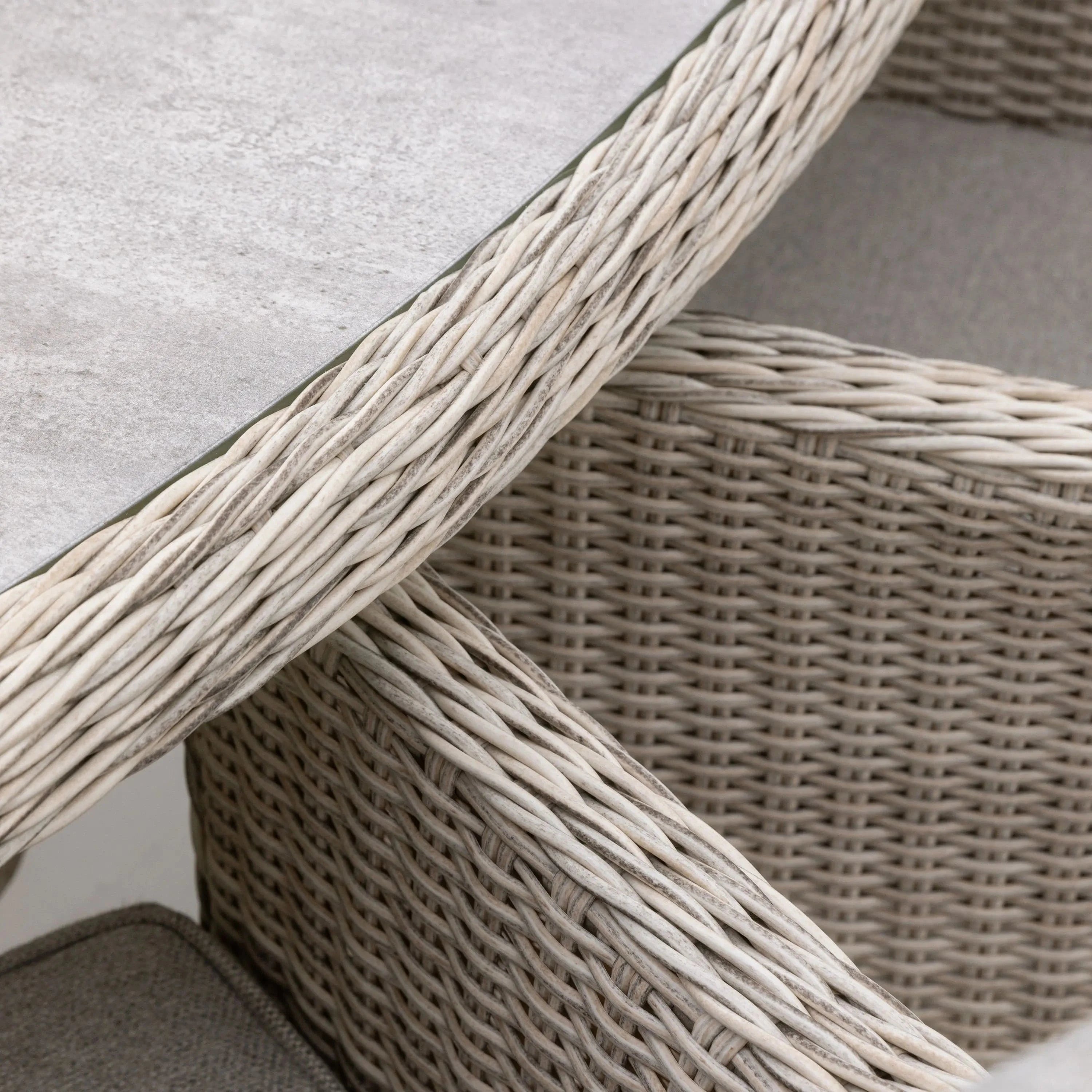 The neutral color palette of this set complements any outdoor decor, making it a versatile choice. The oval table provides ample space for entertaining, making it perfect for alfresco dining. Whether you're hosting a dinner party or enjoying a quiet meal with your family, this set is sure to impress.