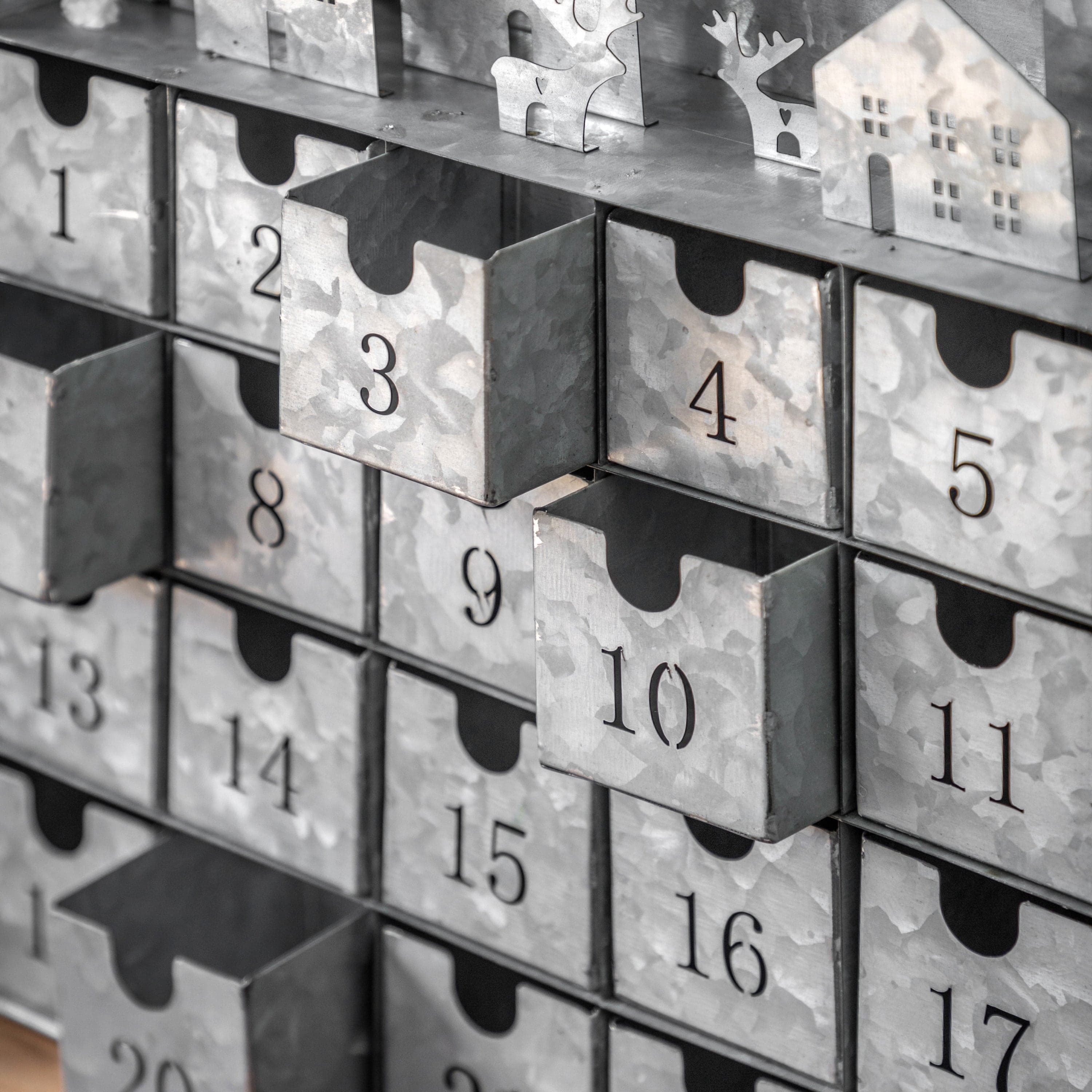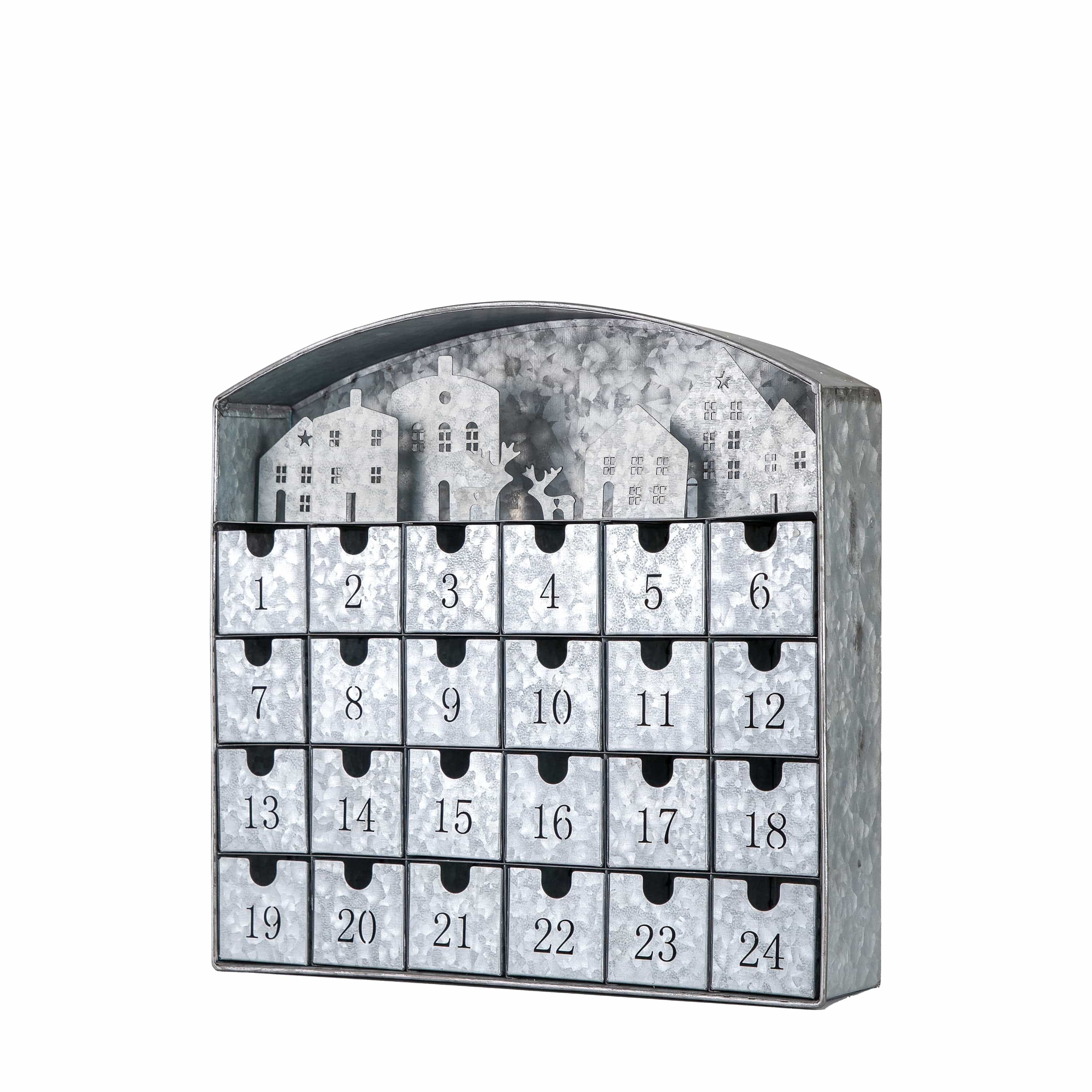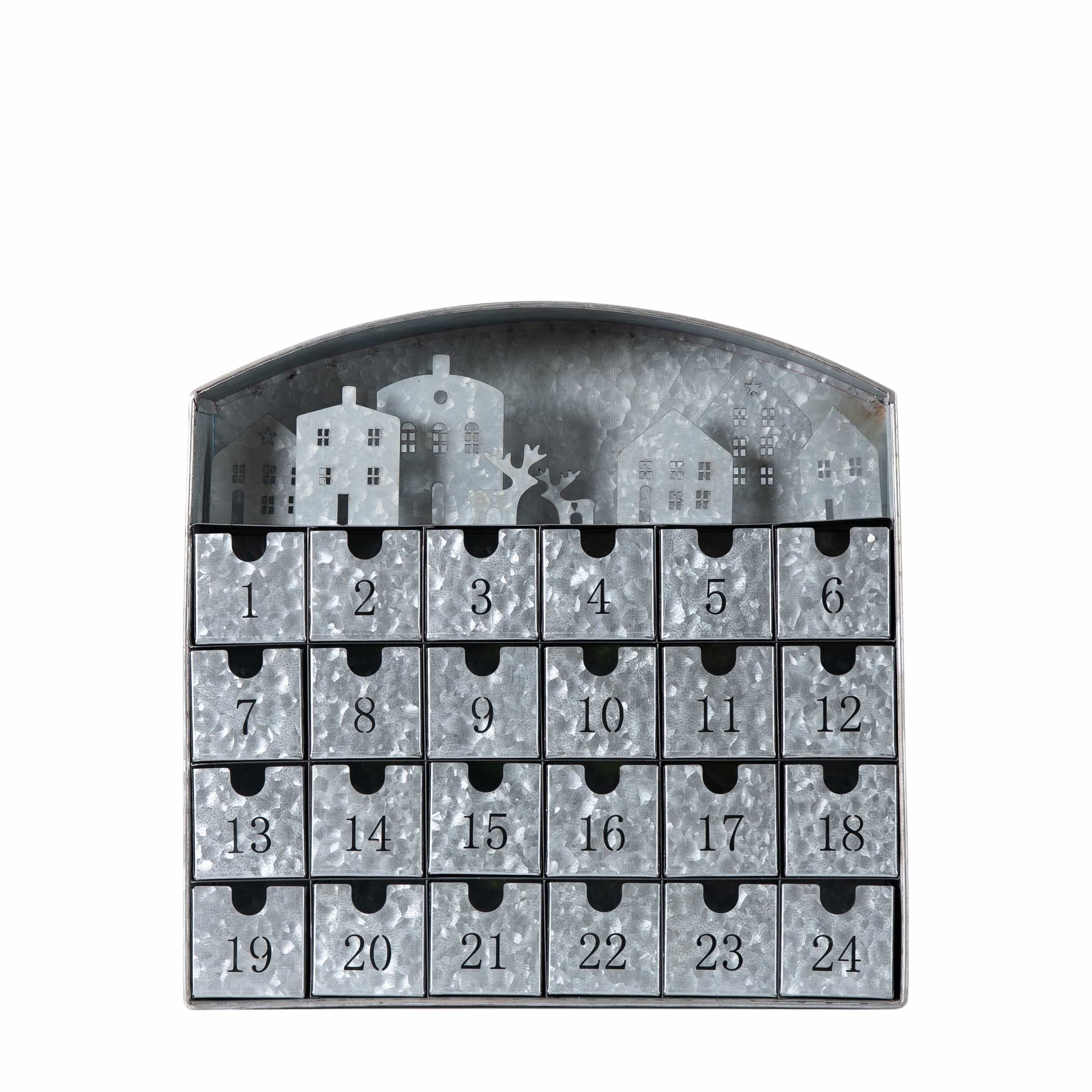 A twist on the traditional advent calendar - featuring a metal structure with numbered draws, allowing space for your favourite treats. The top features a cute house and reindeer design fitting in with any festive display perfectly.