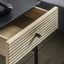 Introducing the Woollard 1 Drawer Bedside, the perfect addition to any modern room. With its sleek black finish and pressed woodgrain effect, this bedside exudes a premium look. The real oak woodgrain veneer drawer fascia features a striking black line pattern, adding a touch of sophistication. The black metal underframe and drawer handle complete the contemporary design. Matching items are also available to complete the look.