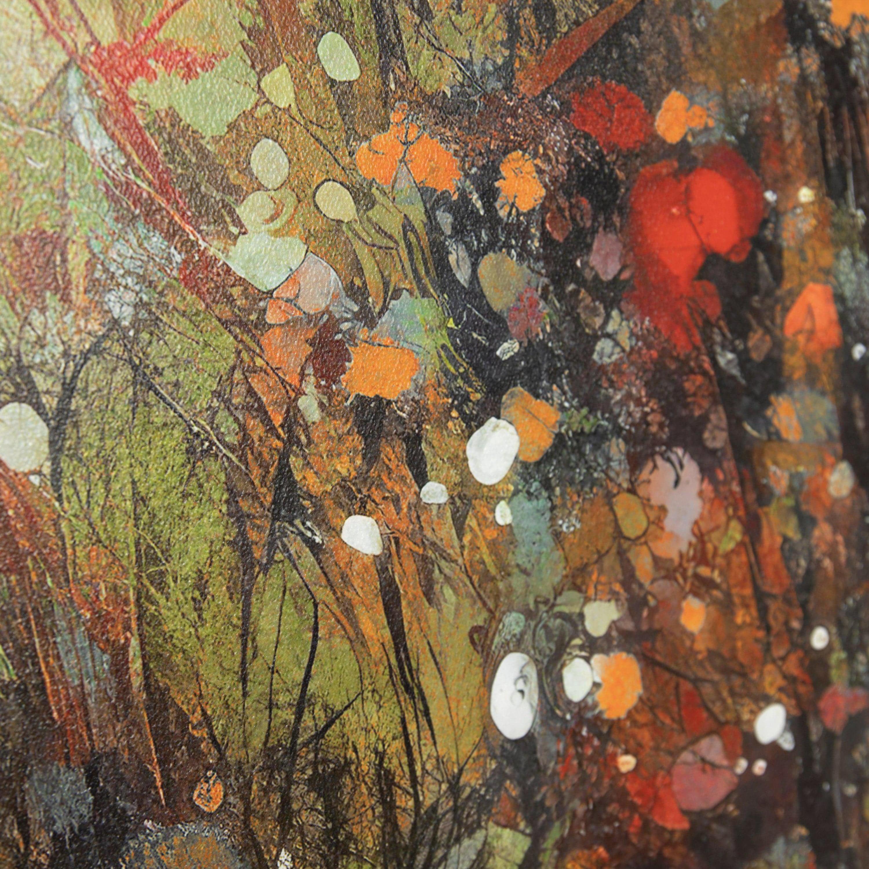 A poppy field that is bursting with dainty petals. The heat of the sun beats heavily on the joyous landscape. The stunning view of a spring morning lifts spirits high. A faint path weaves through the wild meadow as wanderers leave their trail behind. Mellow reds, yellows and oranges create an exuberant scene of escapism. The unglazed canvas wall art uses a mink wood effect profile to complete the presentation.