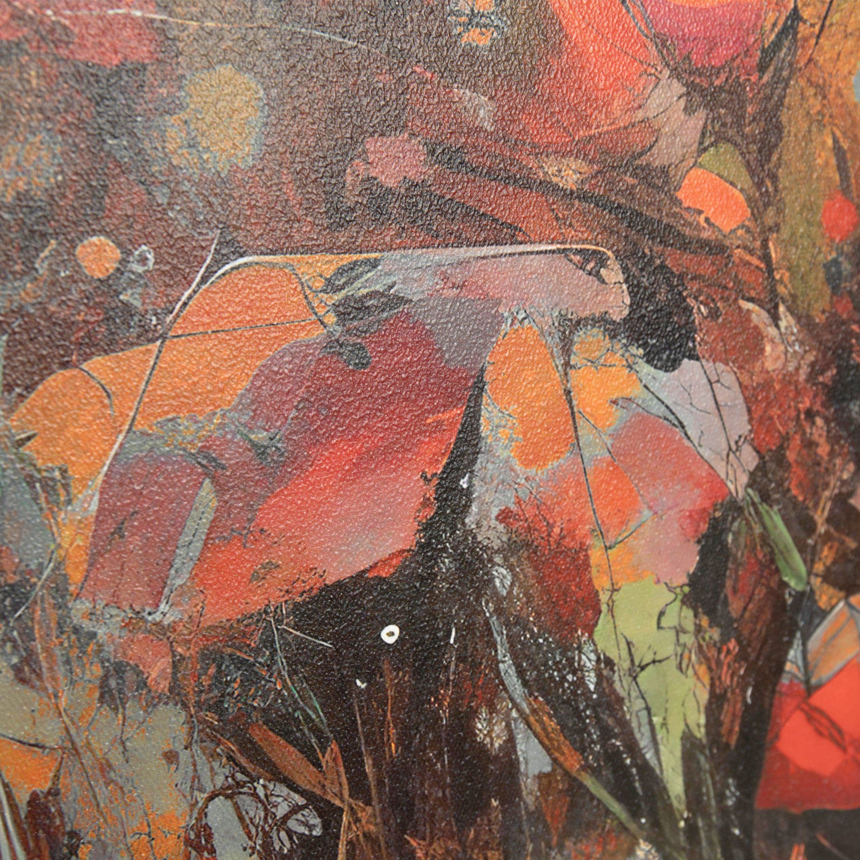 A poppy field that is bursting with dainty petals. The heat of the sun beats heavily on the joyous landscape. The stunning view of a spring morning lifts spirits high. A faint path weaves through the wild meadow as wanderers leave their trail behind. Mellow reds, yellows and oranges create an exuberant scene of escapism. The unglazed canvas wall art uses a mink wood effect profile to complete the presentation.